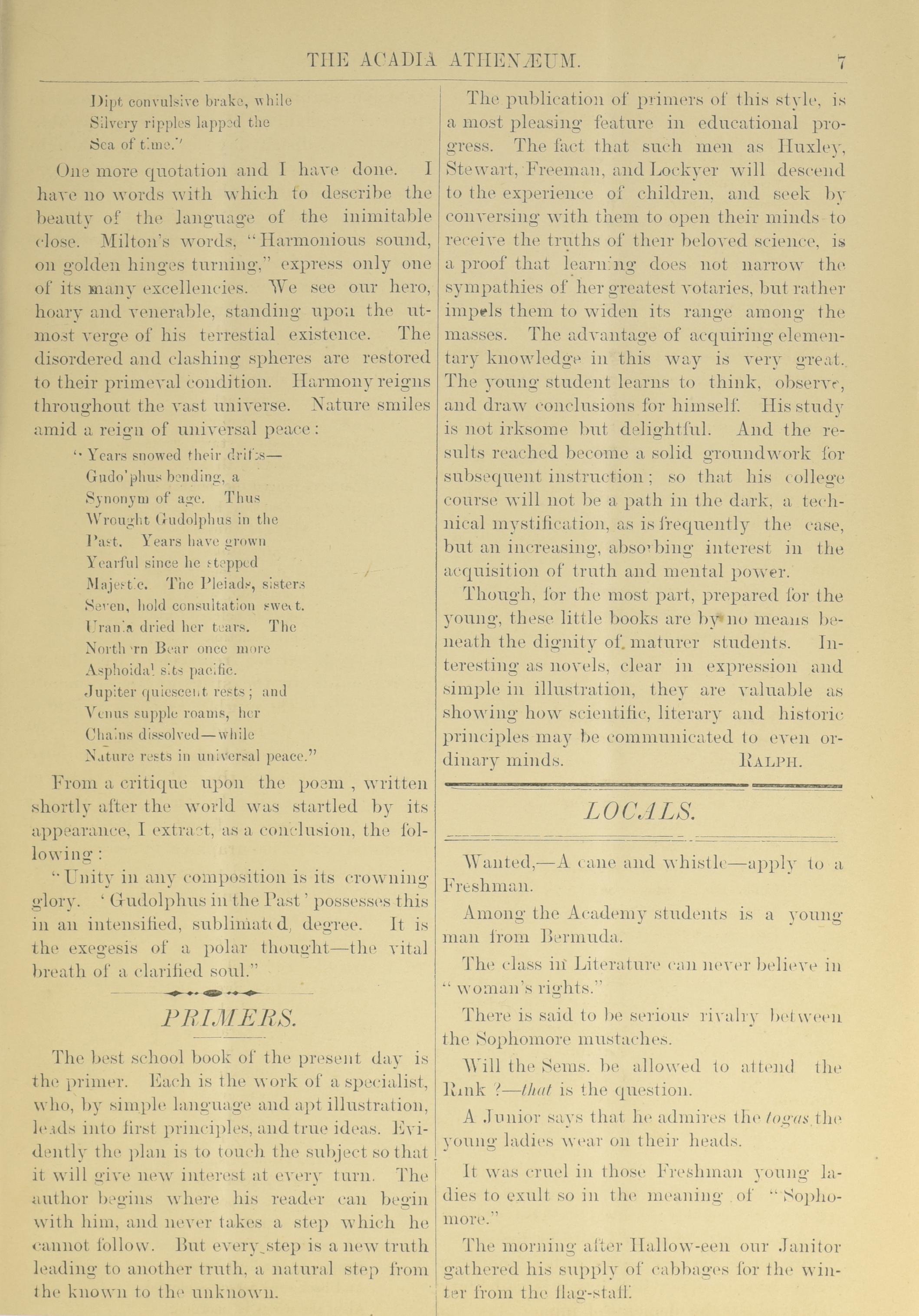 - The Acadia athenaeum : Vol. 8, no. 2 (Nov. 1881)
