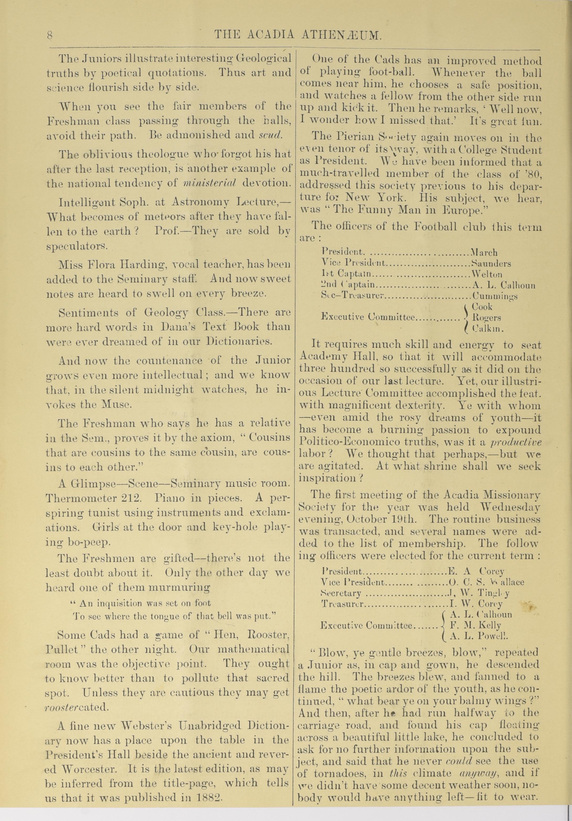 - The Acadia athenaeum : Vol. 8, no. 2 (Nov. 1881)