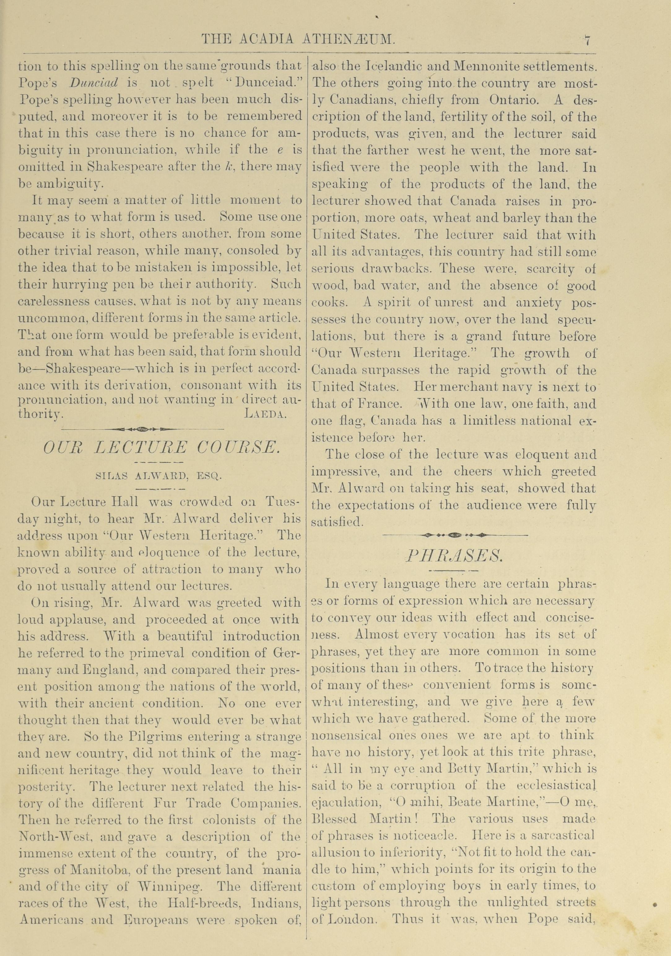 Scanned from copies held at the Acadia University Archives & Special Collections