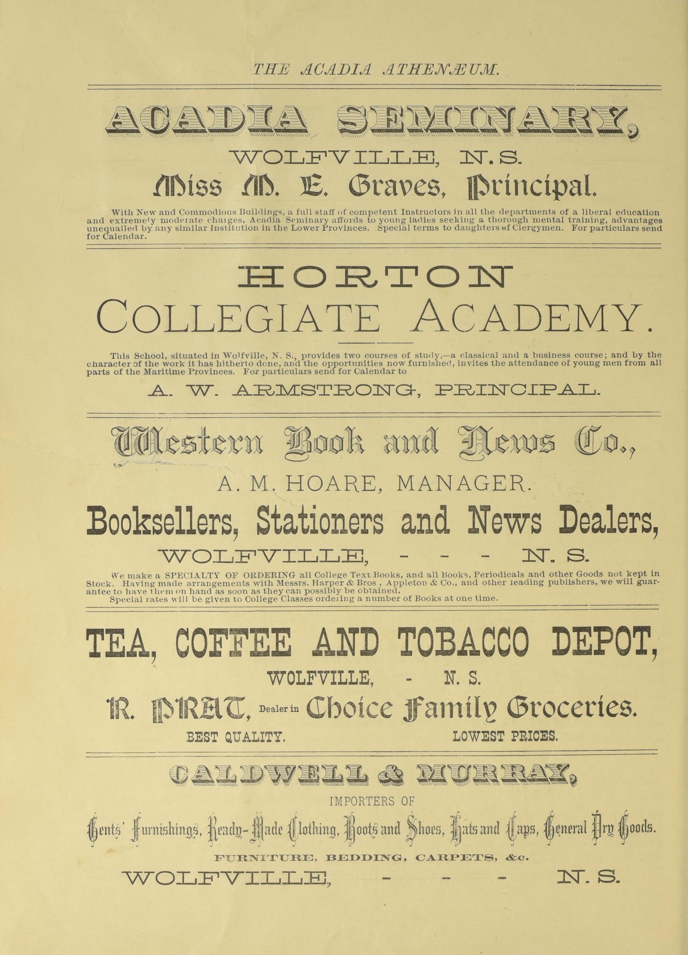 Scanned from copies held at the Acadia University Archives & Special Collections