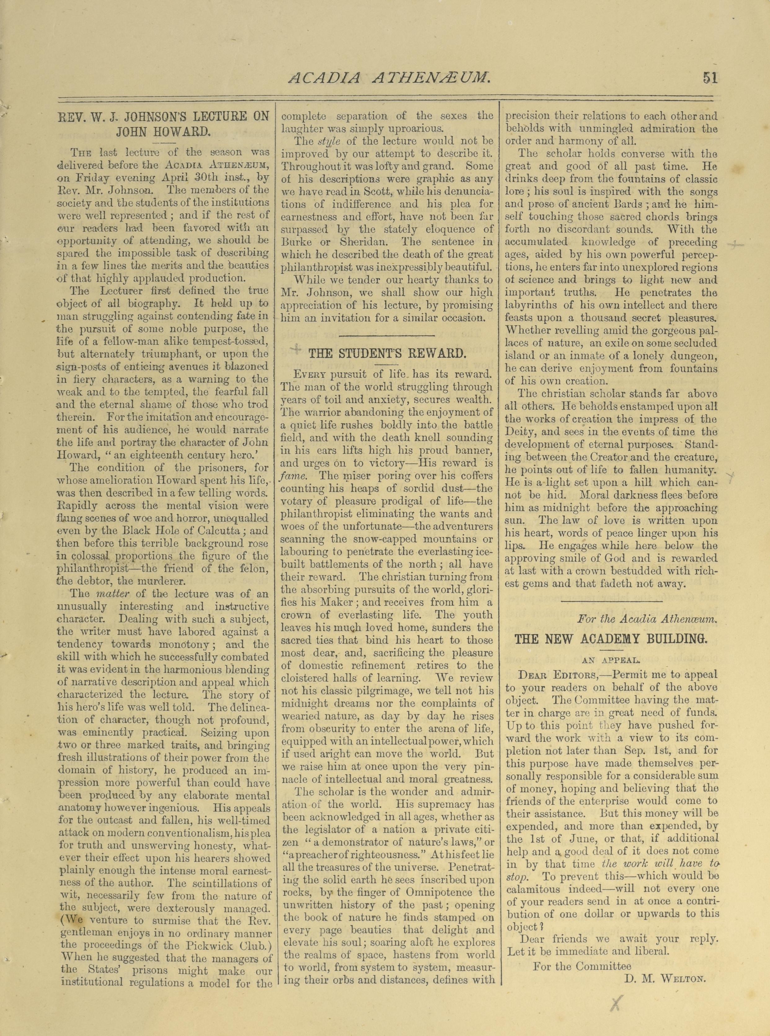 Acadia athenaeum : Acadia athenaeum : Vol. 1, no. 7 (May 1875)
