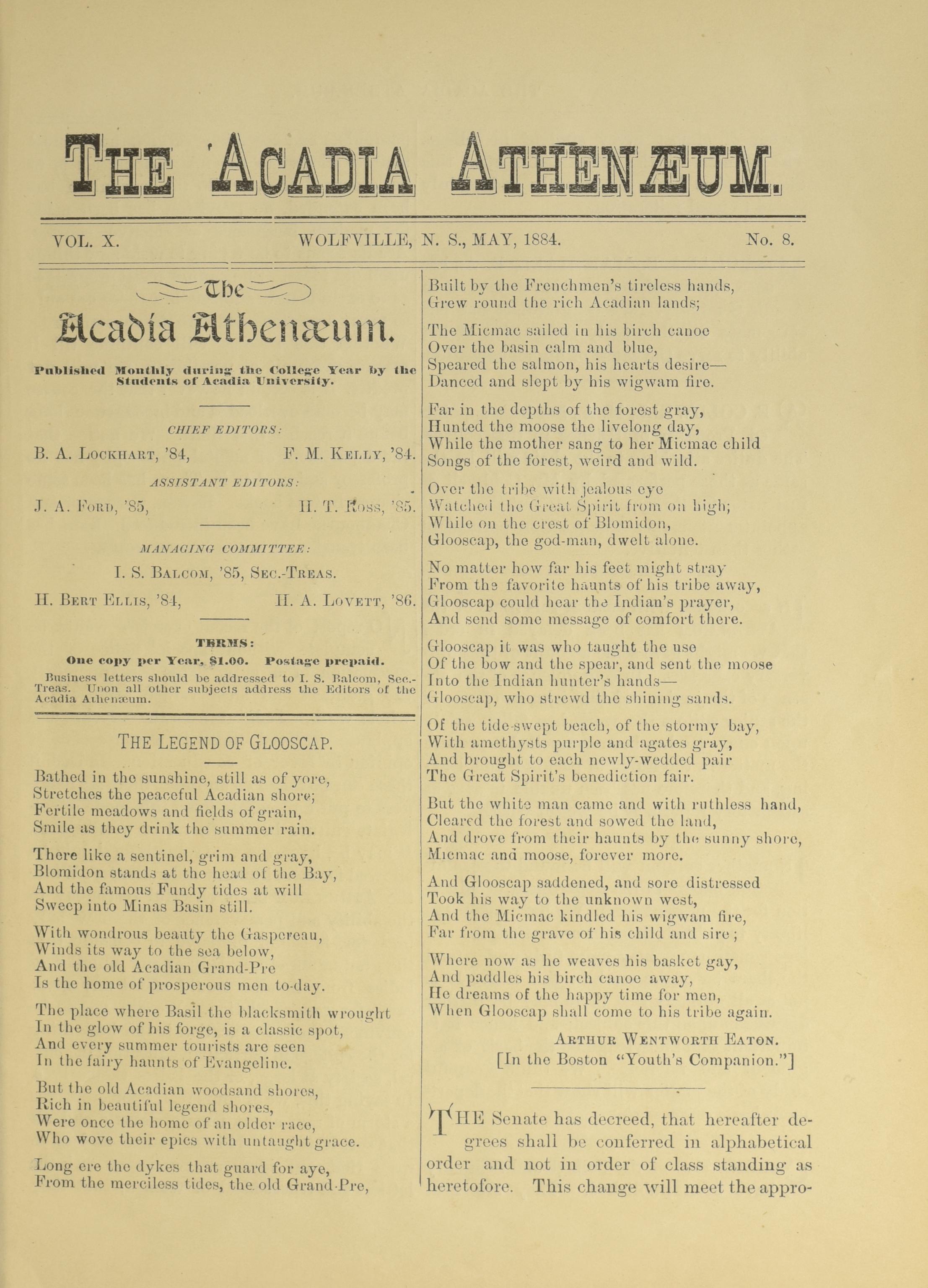 - The Acadia athenaeum : Vol. 10, no. 8 (May 1884)