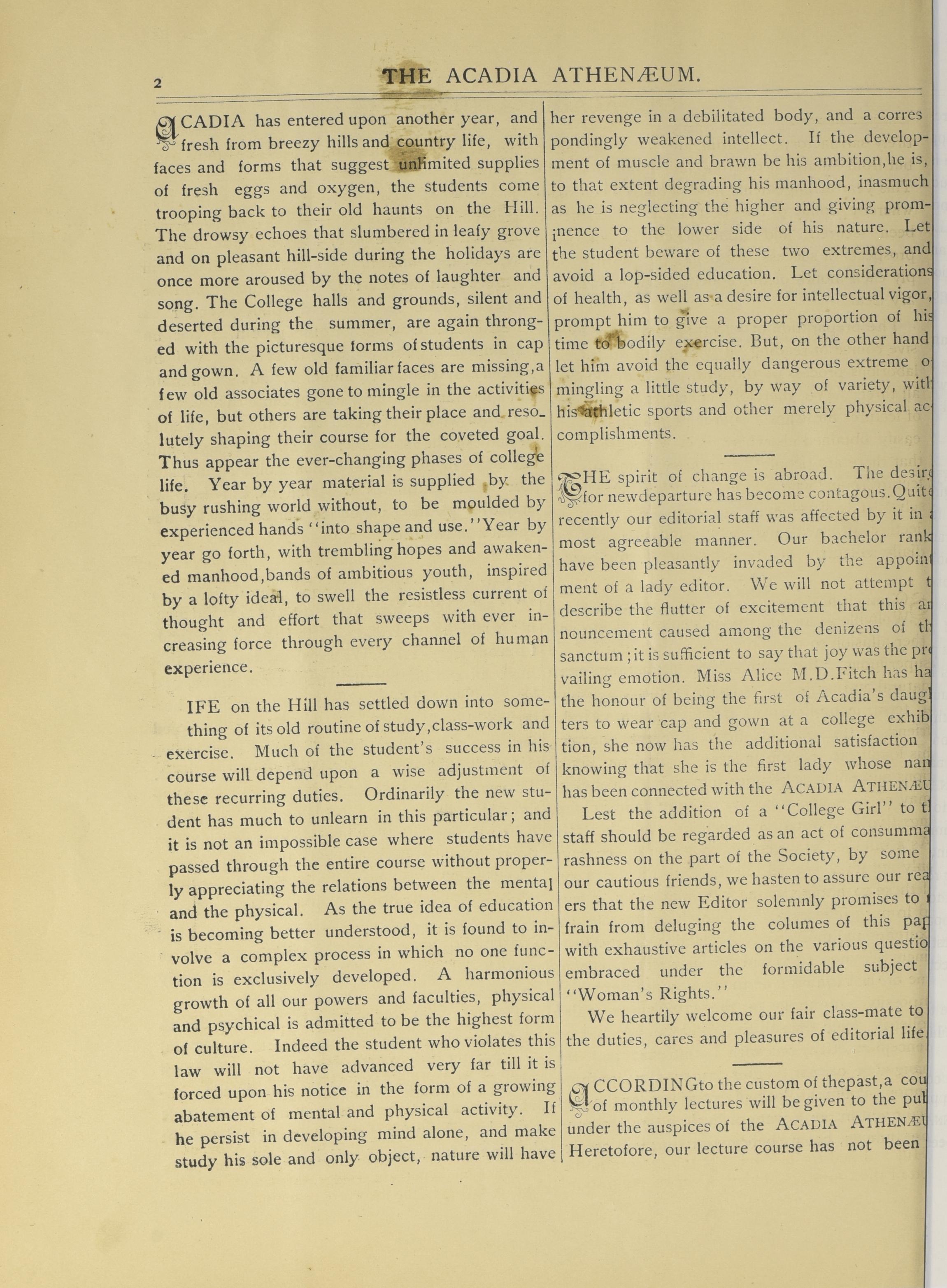 Acadia athenaeum : The Acadia athenaeum : Vol. 11, no. 1 (Oct. 1884)