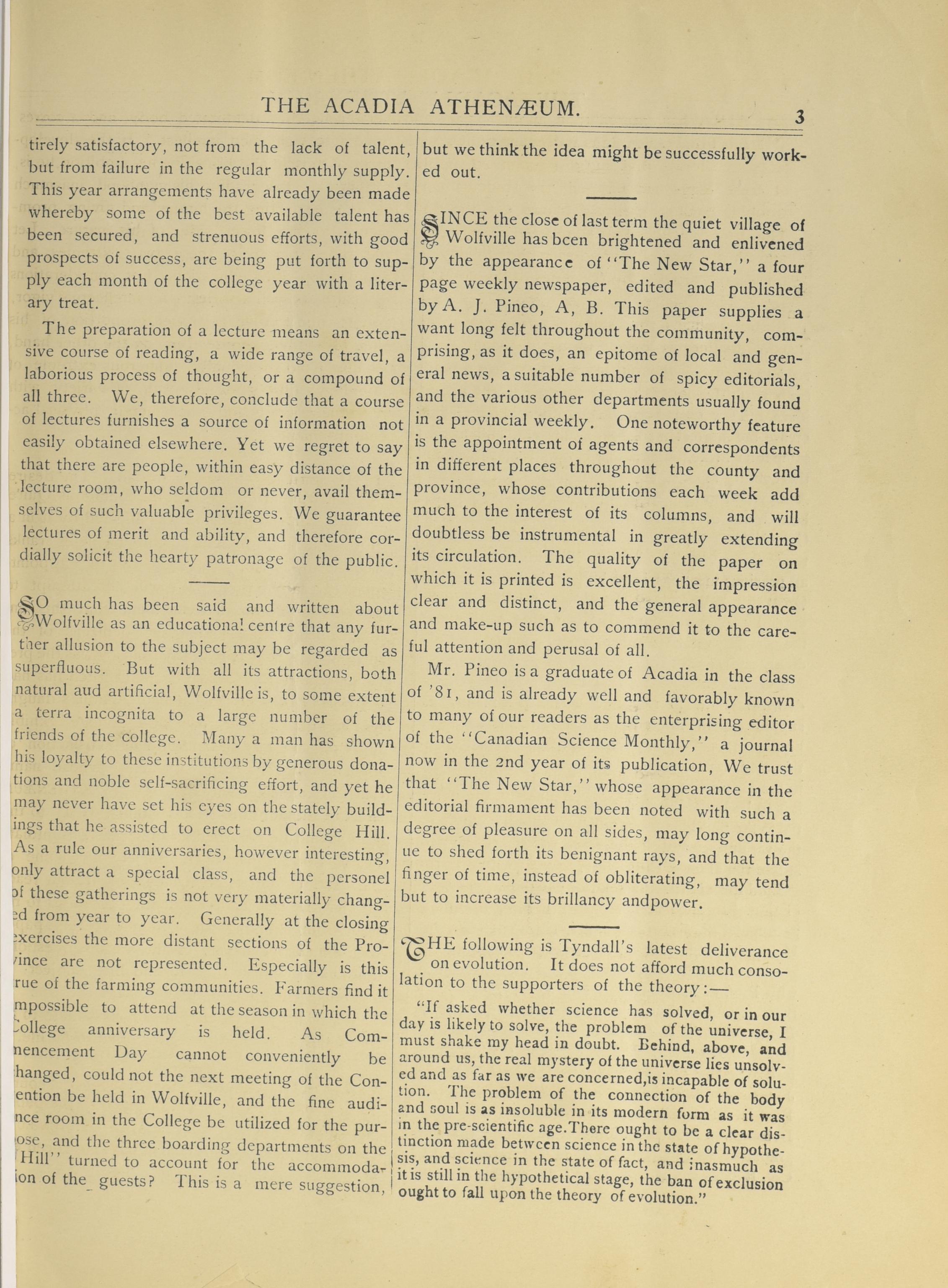 - The Acadia athenaeum : Vol. 11, no. 1 (Oct. 1884)