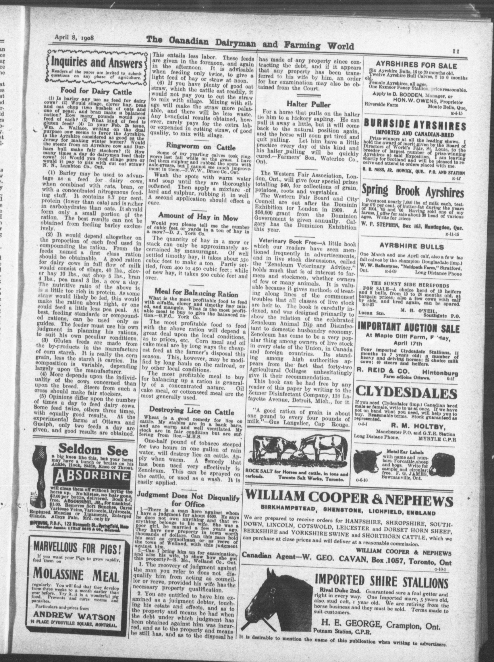 The Canadian dairyman and farming world : Vol. XXVII, No. 12 (April 8, 1908)