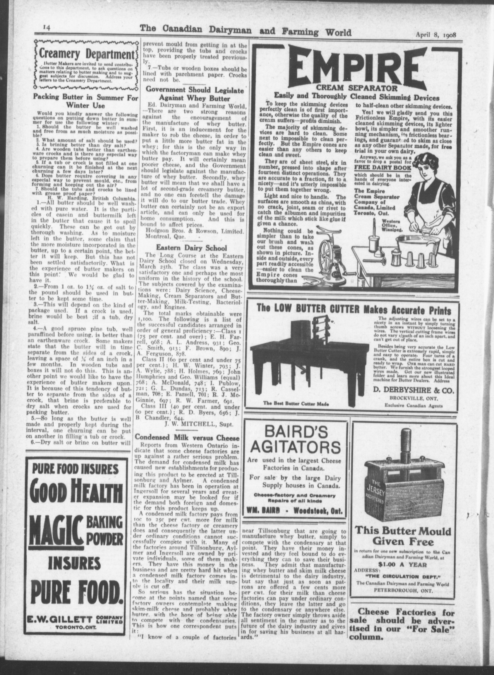 The Canadian dairyman and farming world : Vol. XXVII, No. 12 (April 8, 1908)