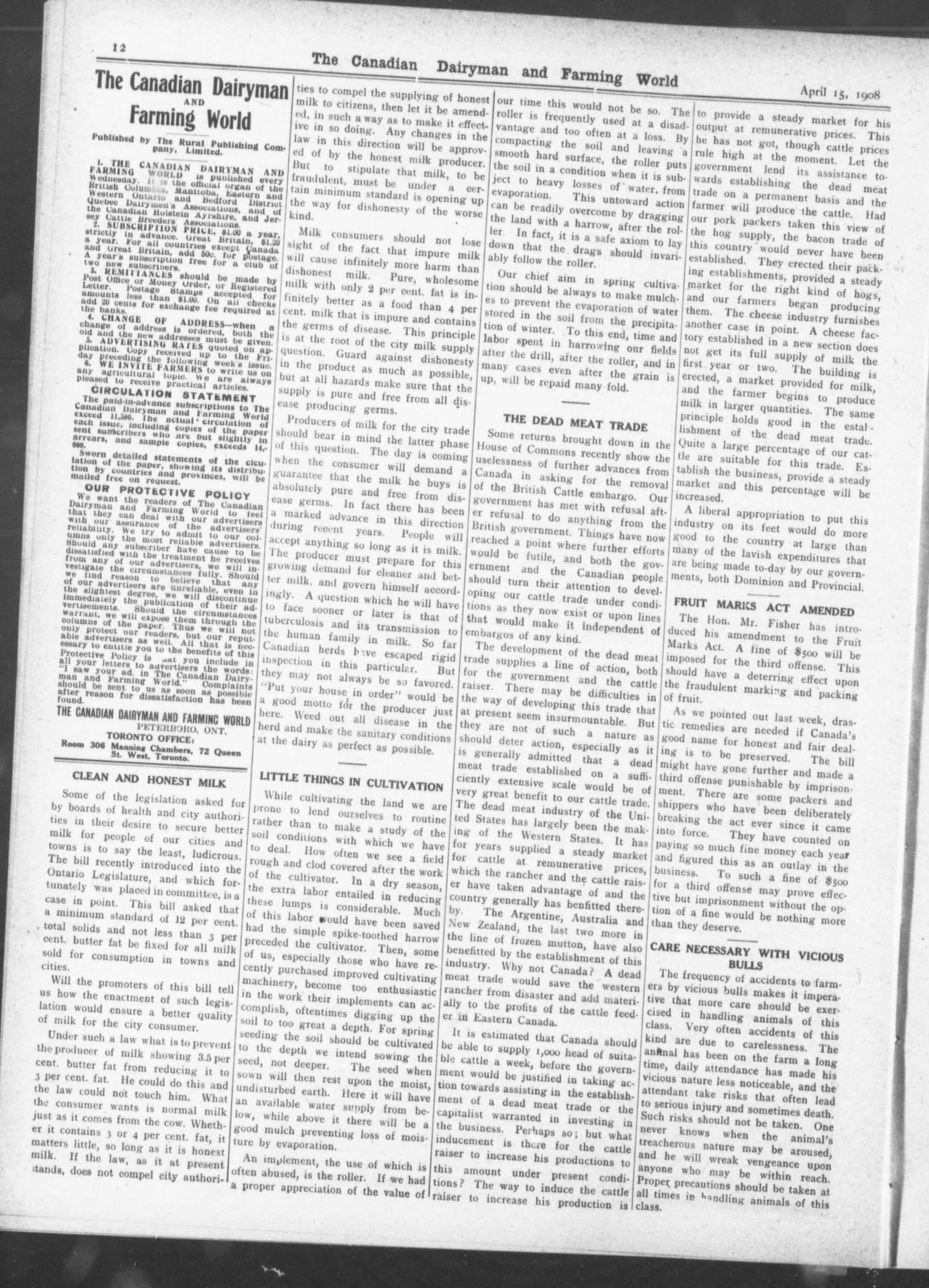 The Canadian dairyman and farming world : Vol. XXVII, No. 13 (April 15, 1908)