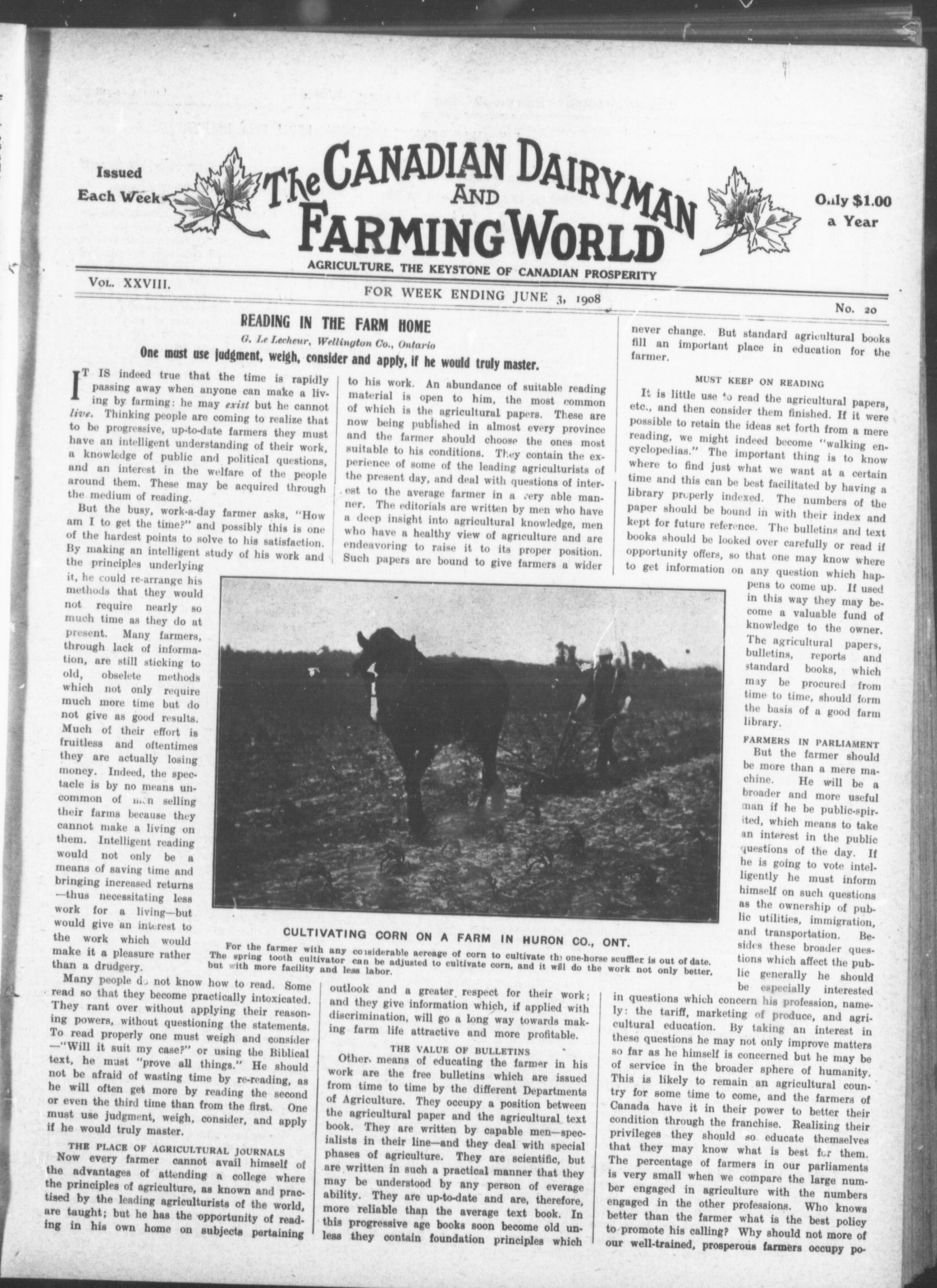 The Canadian dairyman and farming world : Vol. XXVII, No. 20 (June 3, 1908)