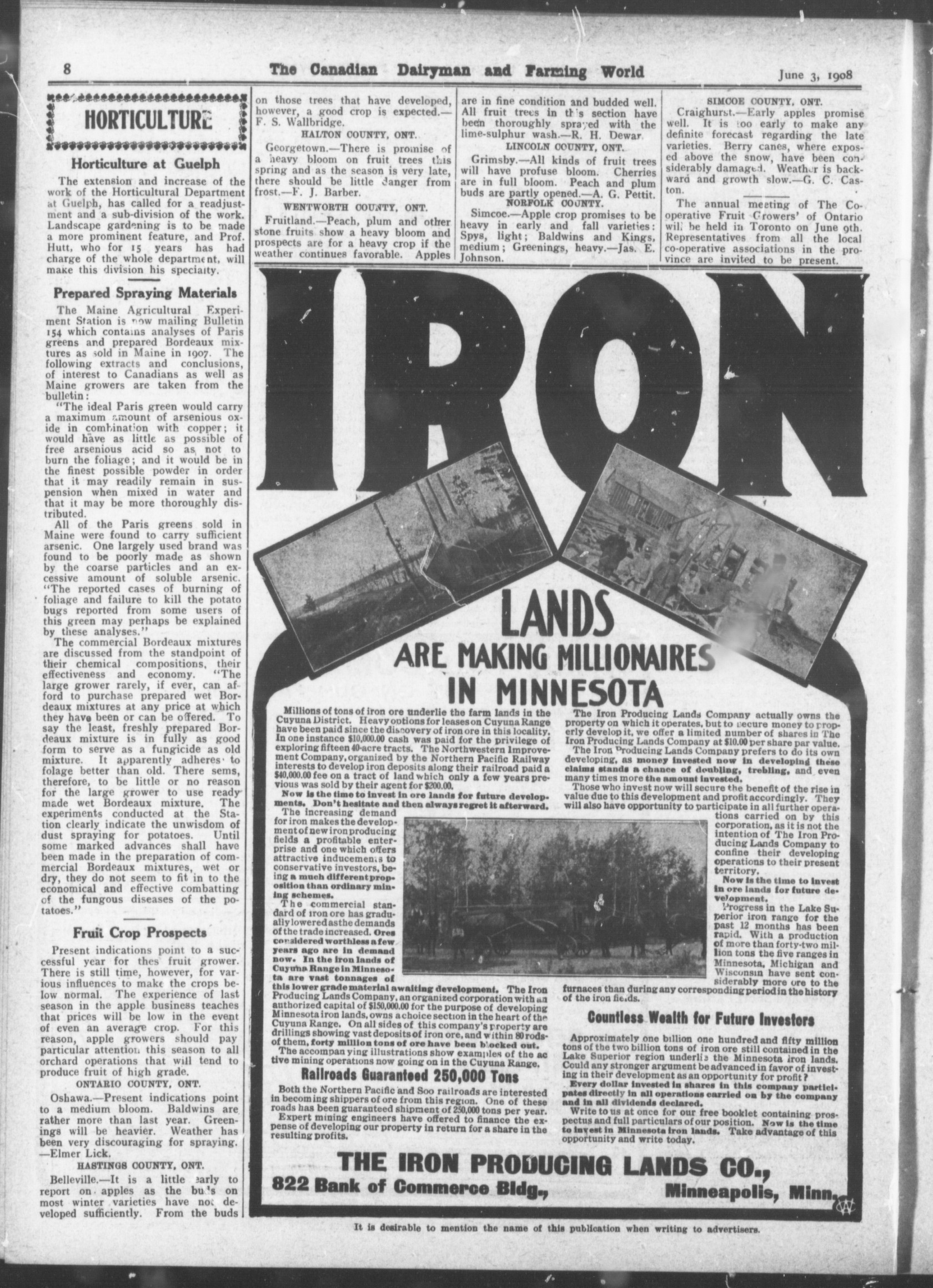 The Canadian dairyman and farming world : Vol. XXVII, No. 20 (June 3, 1908)
