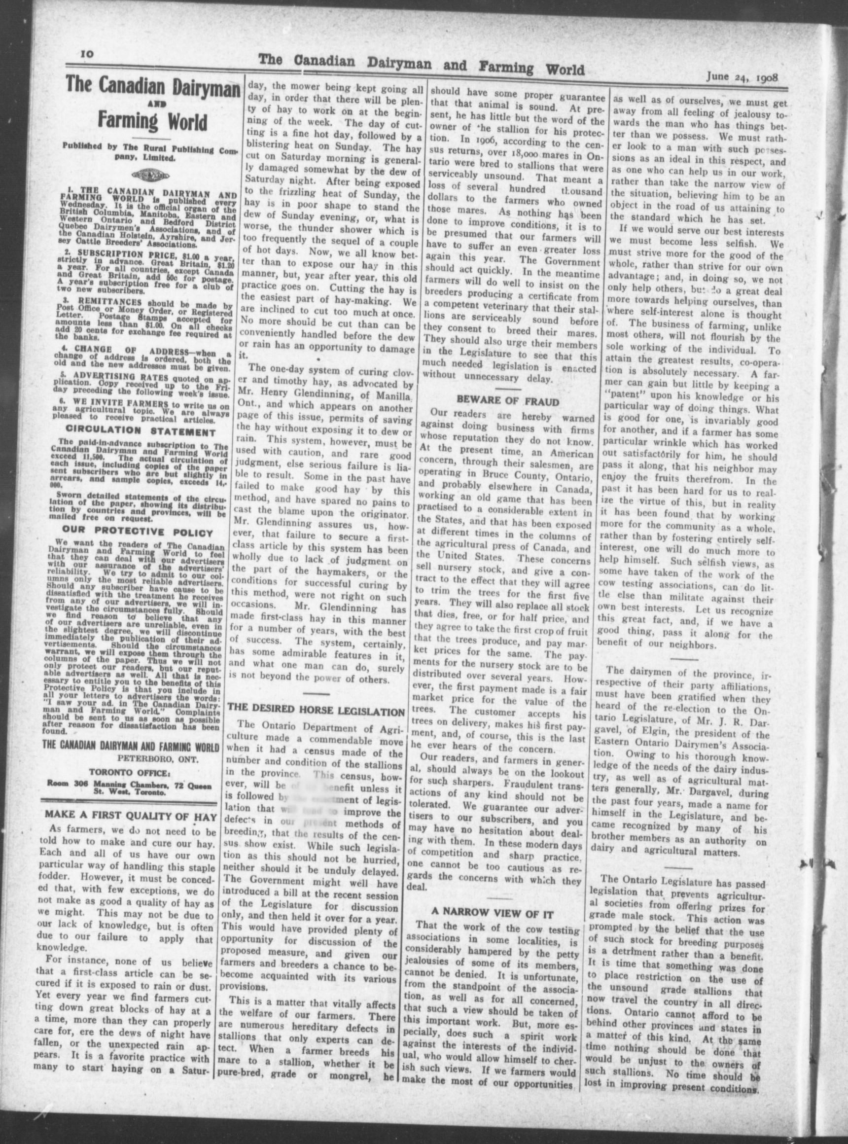 The Canadian dairyman and farming world : Vol. XXVII, No. 23 (June 24, 1908)