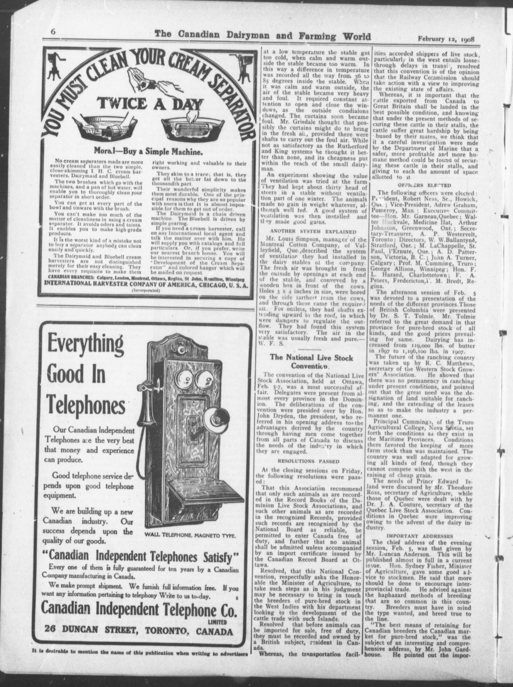 The Canadian dairyman and farming world : Vol. XXVII, No. 4 (February 12, 1908)
