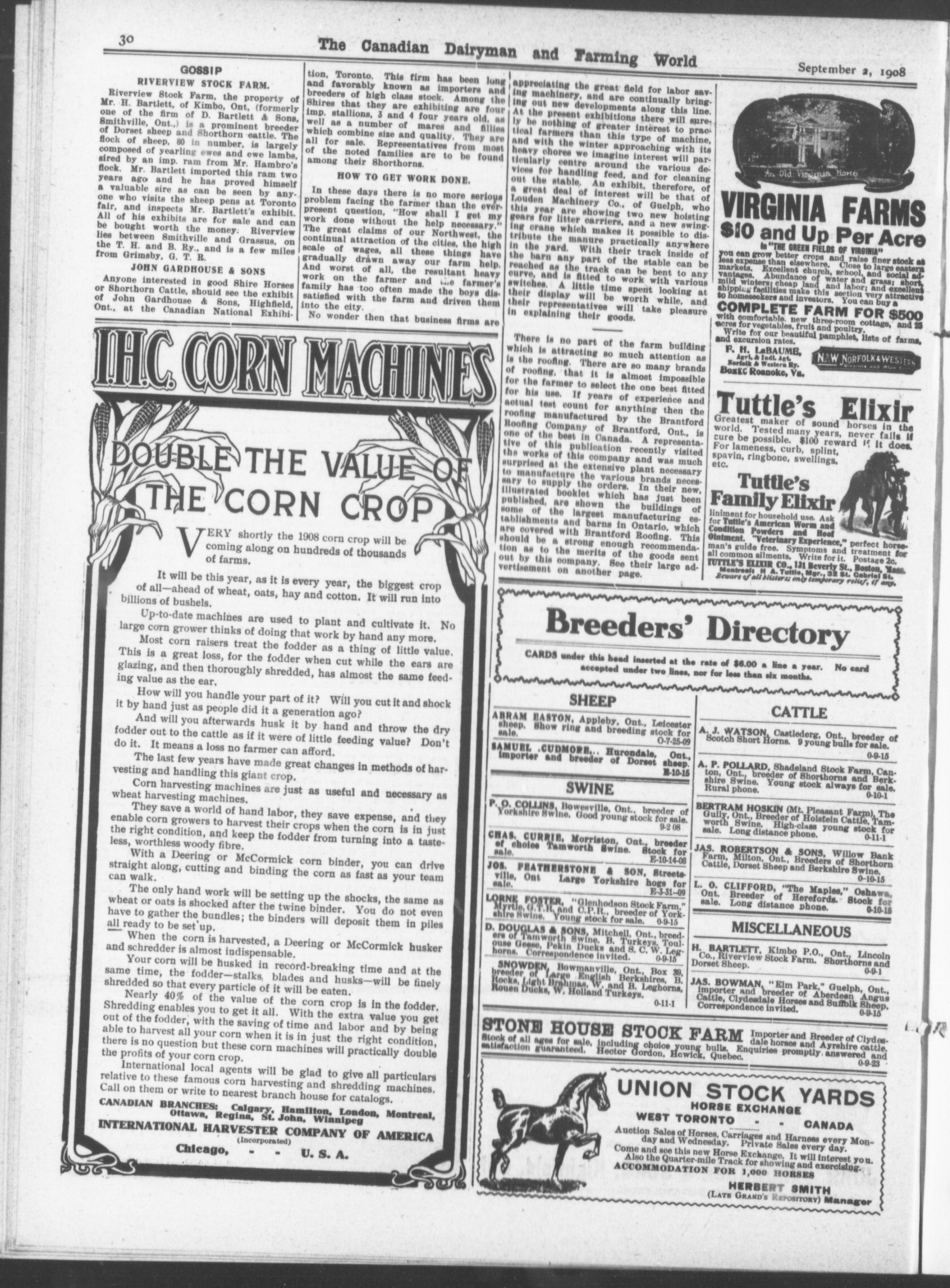 The Canadian dairyman and farming world : Vol. XXVII, No. 33 (September 2, 1908)