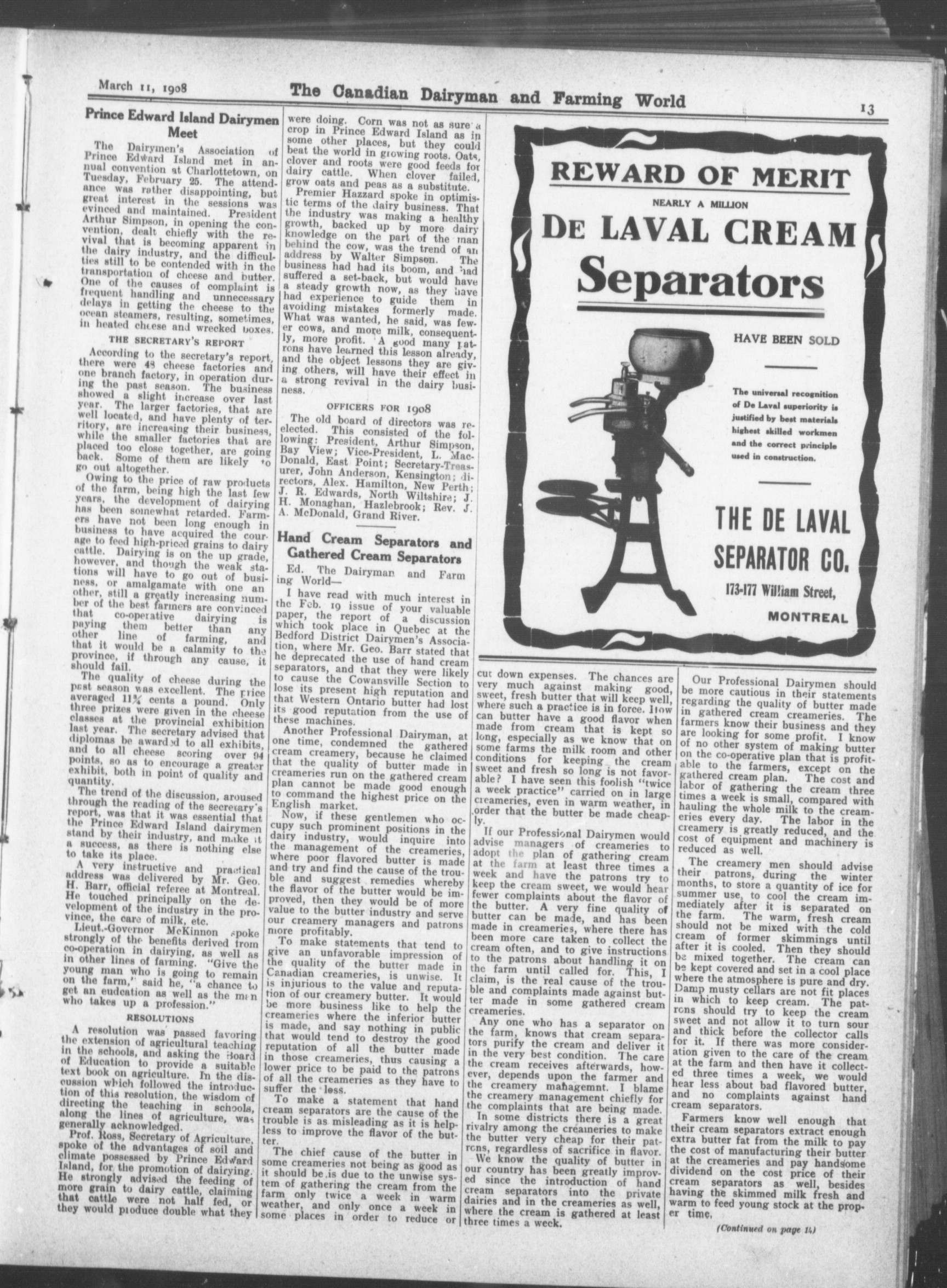 The Canadian dairyman and farming world : Vol. XXVII, No. 8 (March 11, 1908)