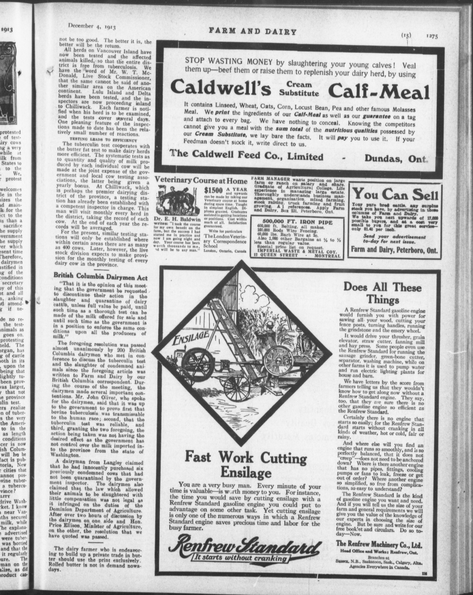 Farm and dairy & rural home : Vol. XXXII, No. 49 (December 4, 1913)