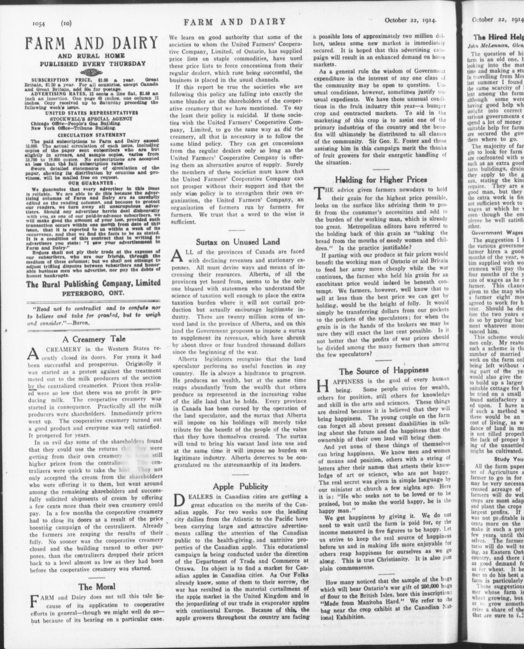 Farm and dairy & rural home : Vol. XXXIII, No. 42 [i.e. 43] (October 22, 1914)