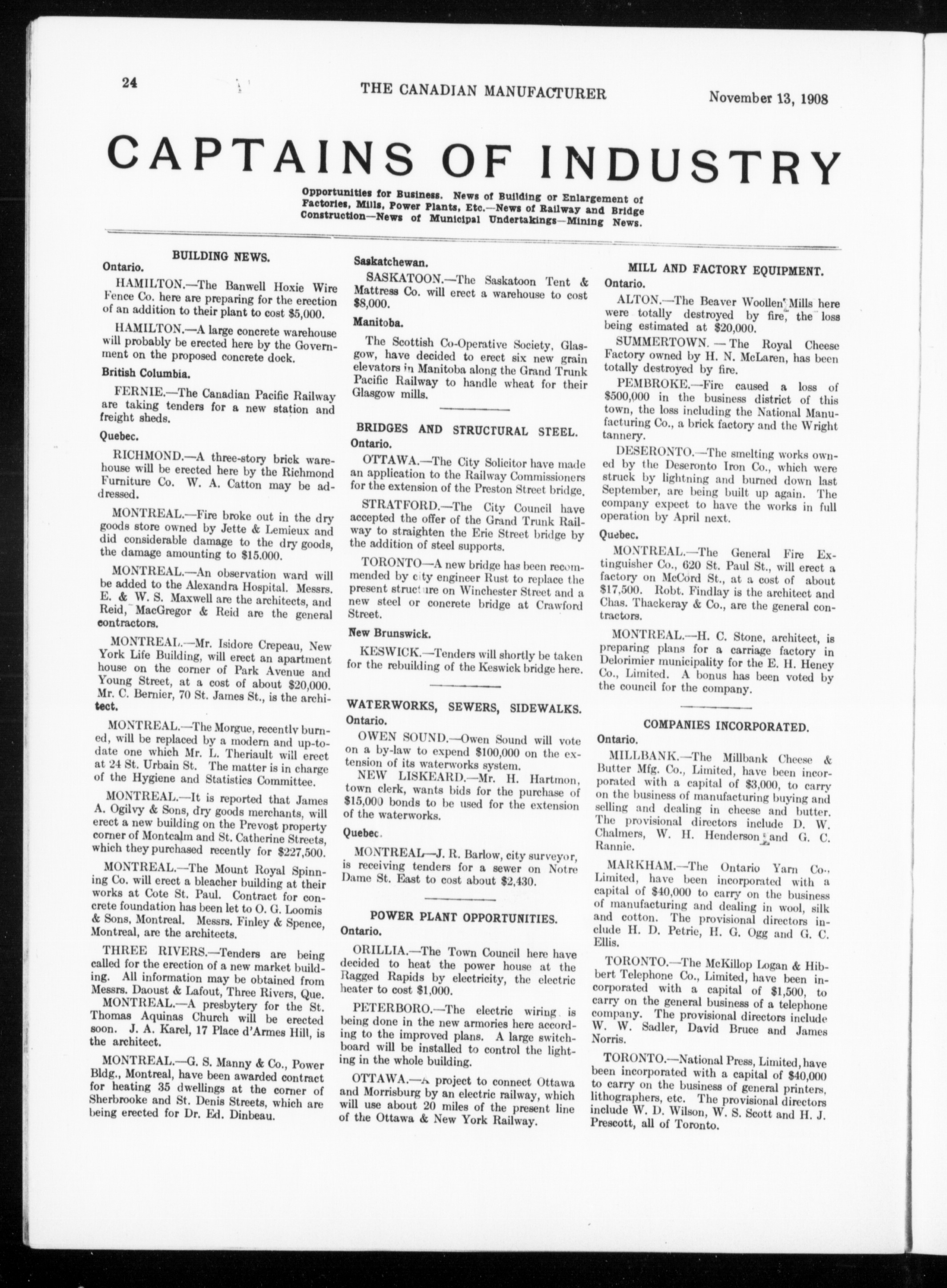 The Canadian manufacturer : New series Vol. 1, No. 10 (November 13, 1908)