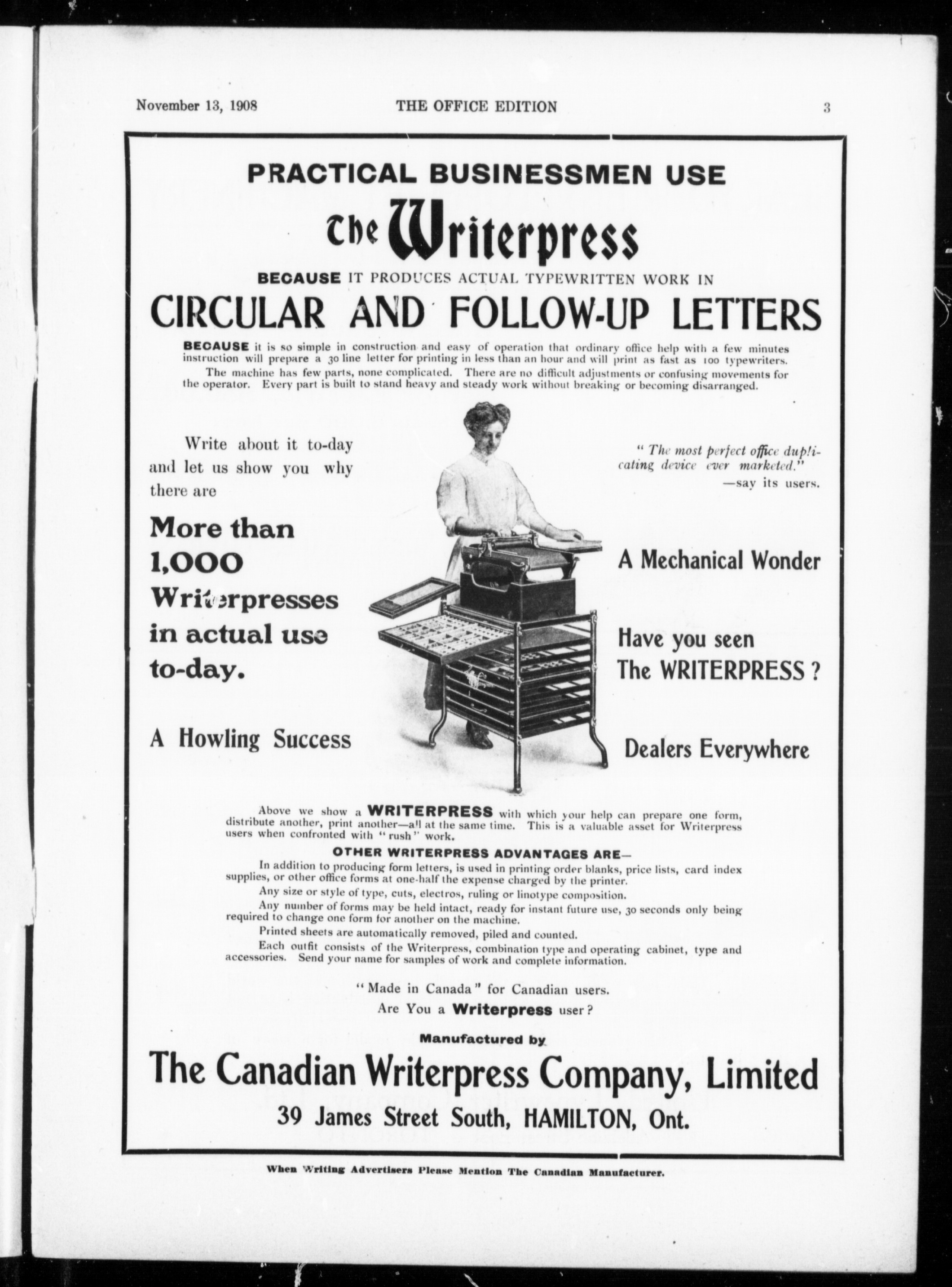 The Canadian manufacturer : New series Vol. 1, No. 10 (November 13, 1908)