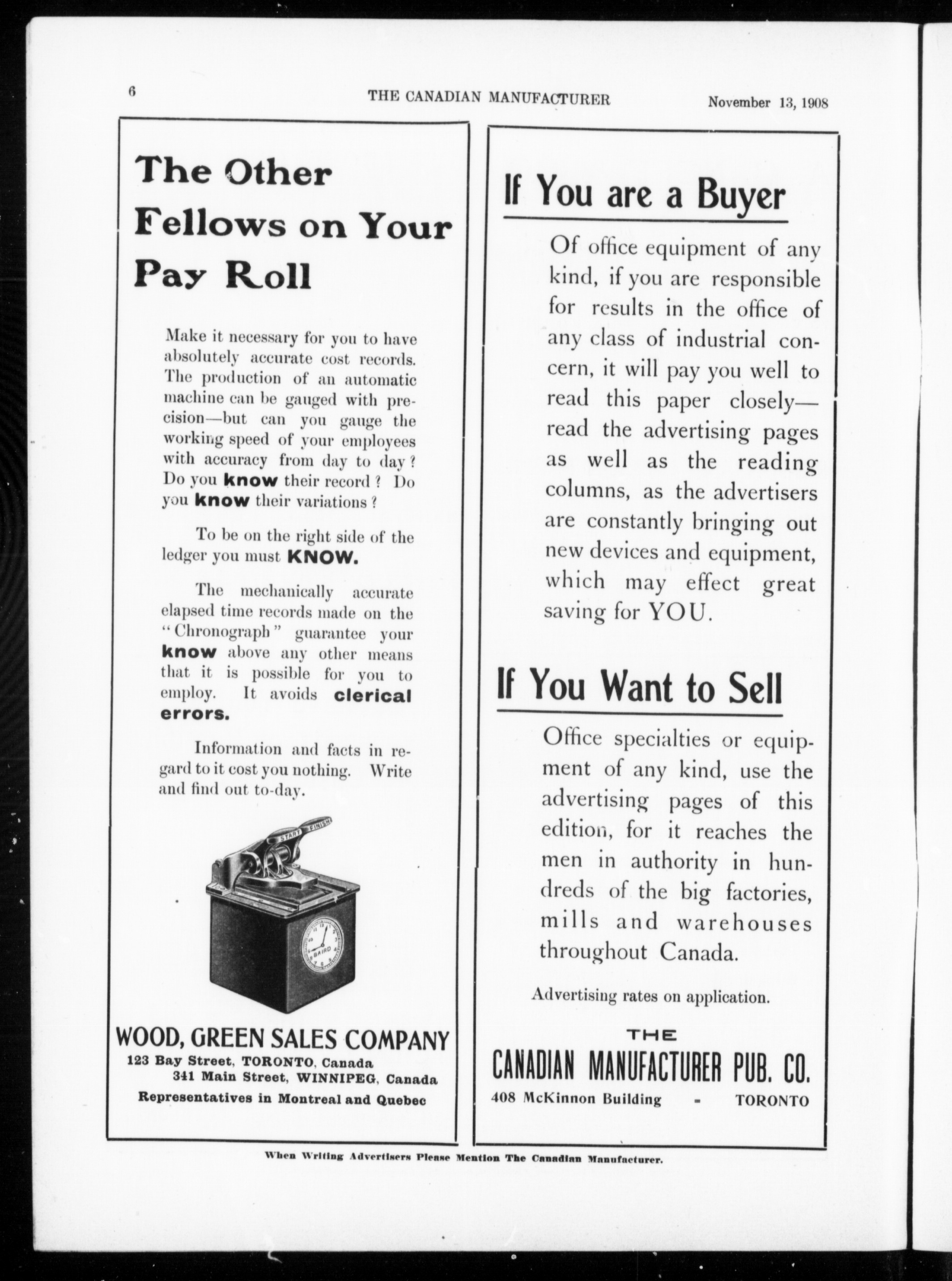The Canadian manufacturer : New series Vol. 1, No. 10 (November 13, 1908)