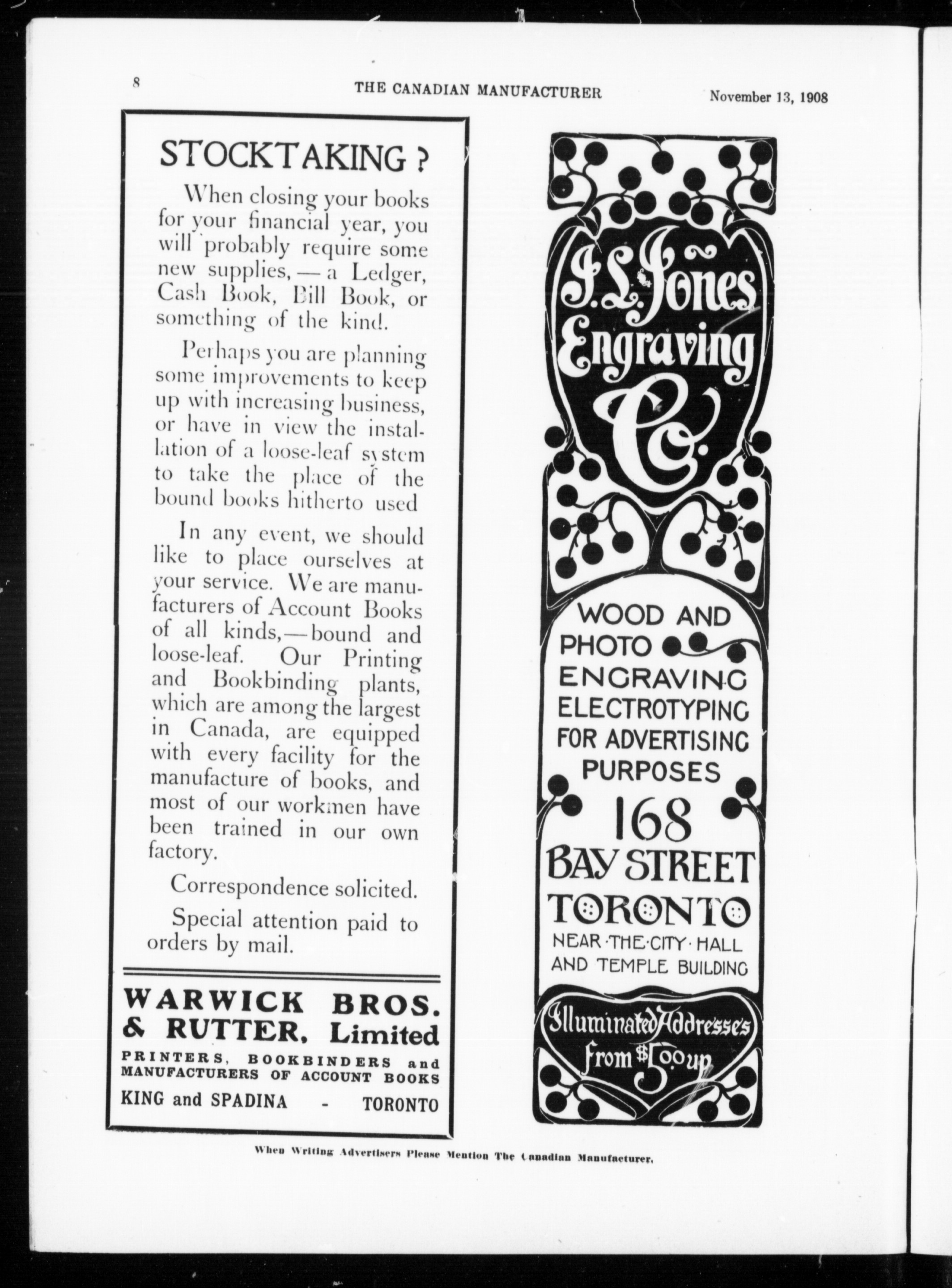 The Canadian manufacturer : New series Vol. 1, No. 10 (November 13, 1908)