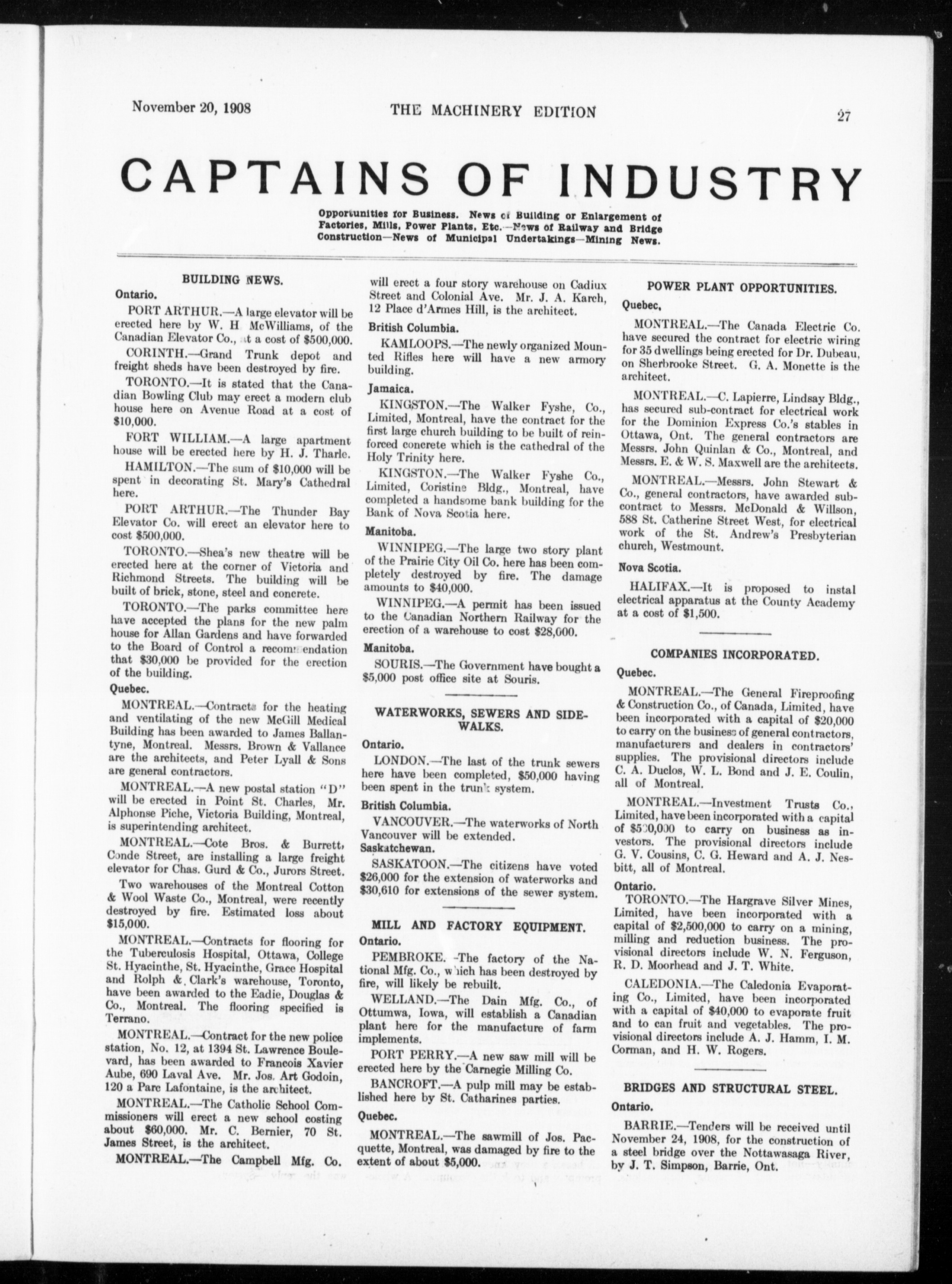The Canadian manufacturer : New series Vol. 1, No. 11 (November 20, 1908)