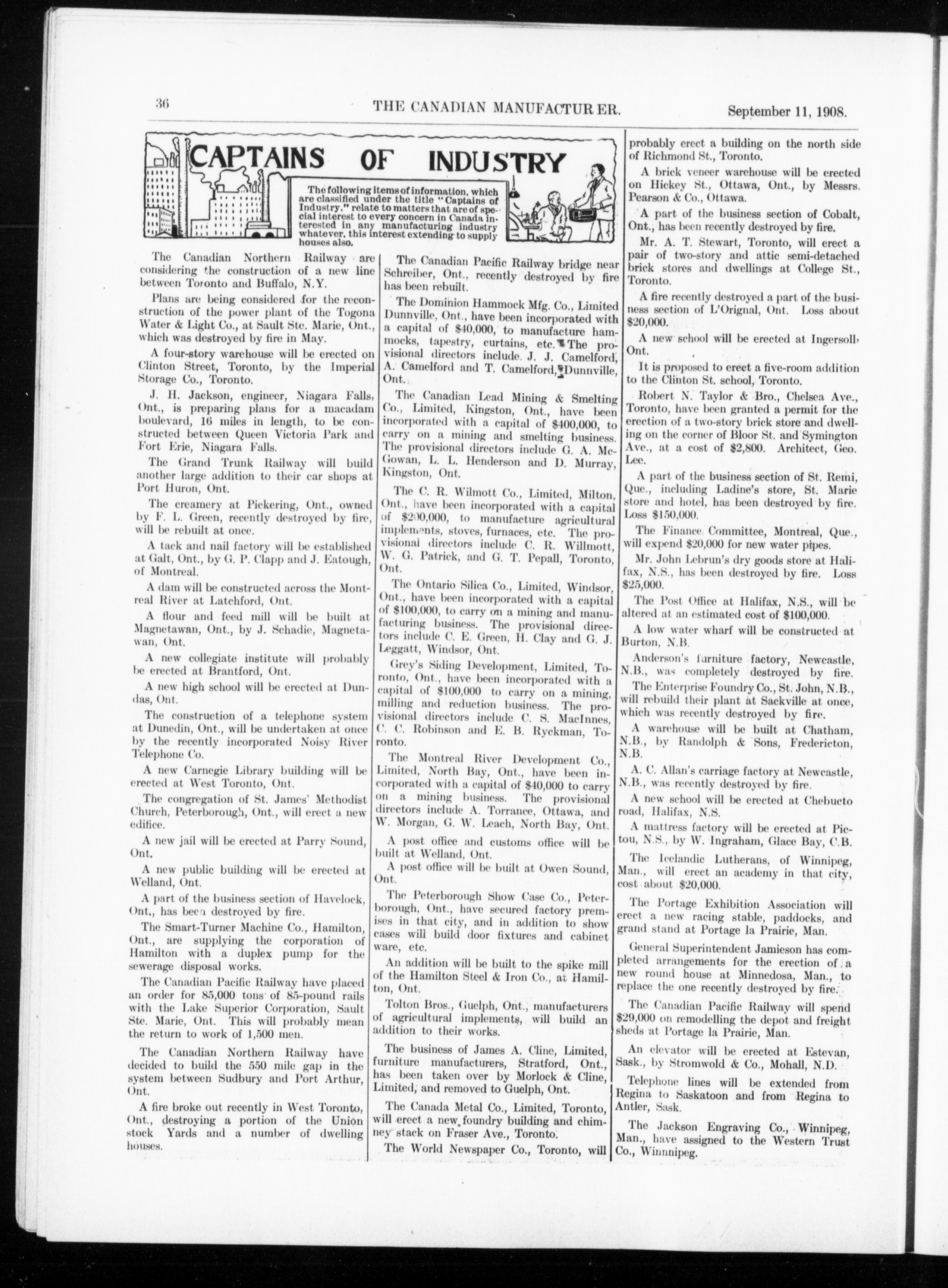 The Canadian manufacturer : New series Vol. 1, No. 2 (September 11, 1908)