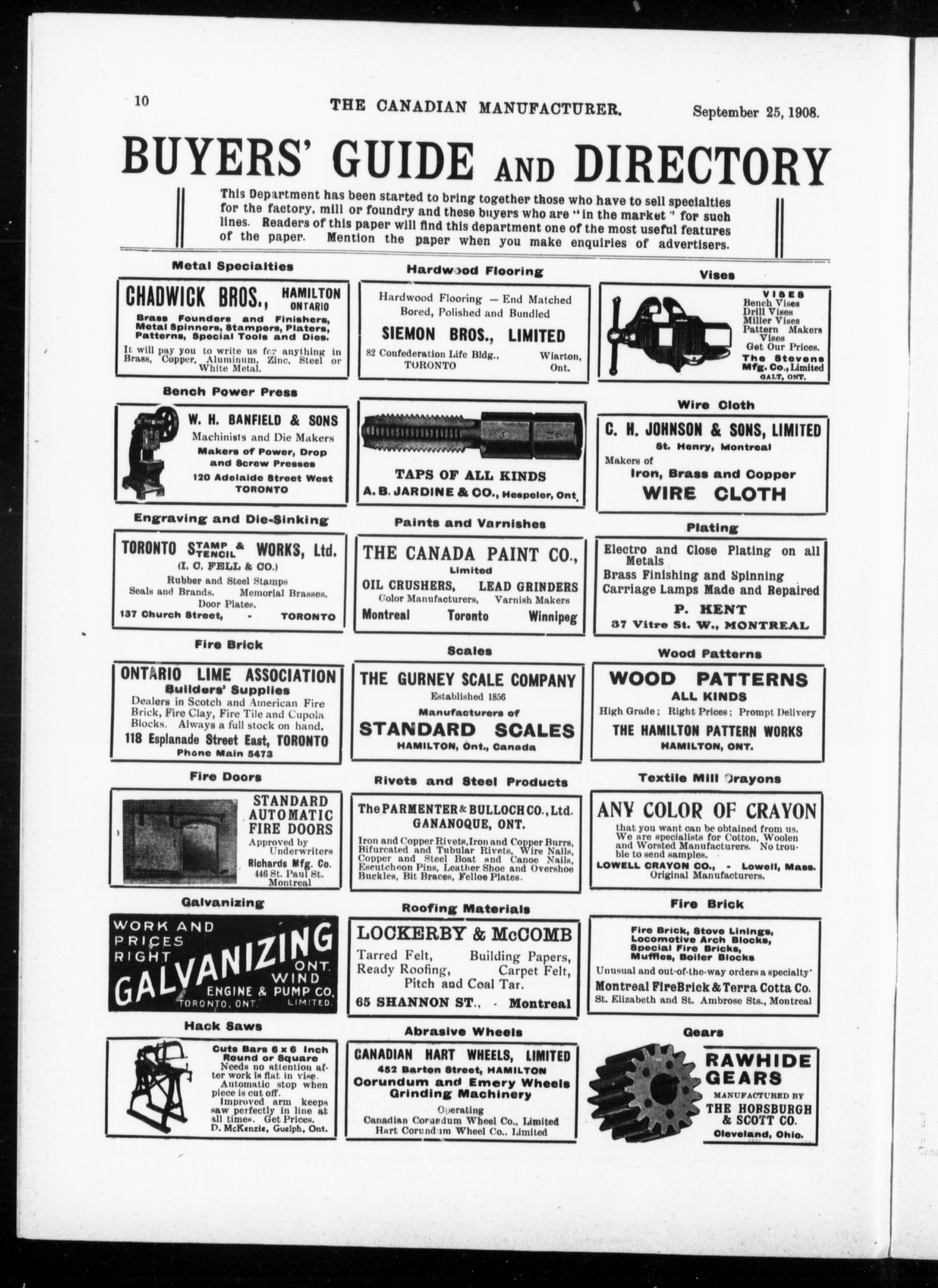 The Canadian manufacturer : New series Vol. 1, No. 4 (September 25, 1908)