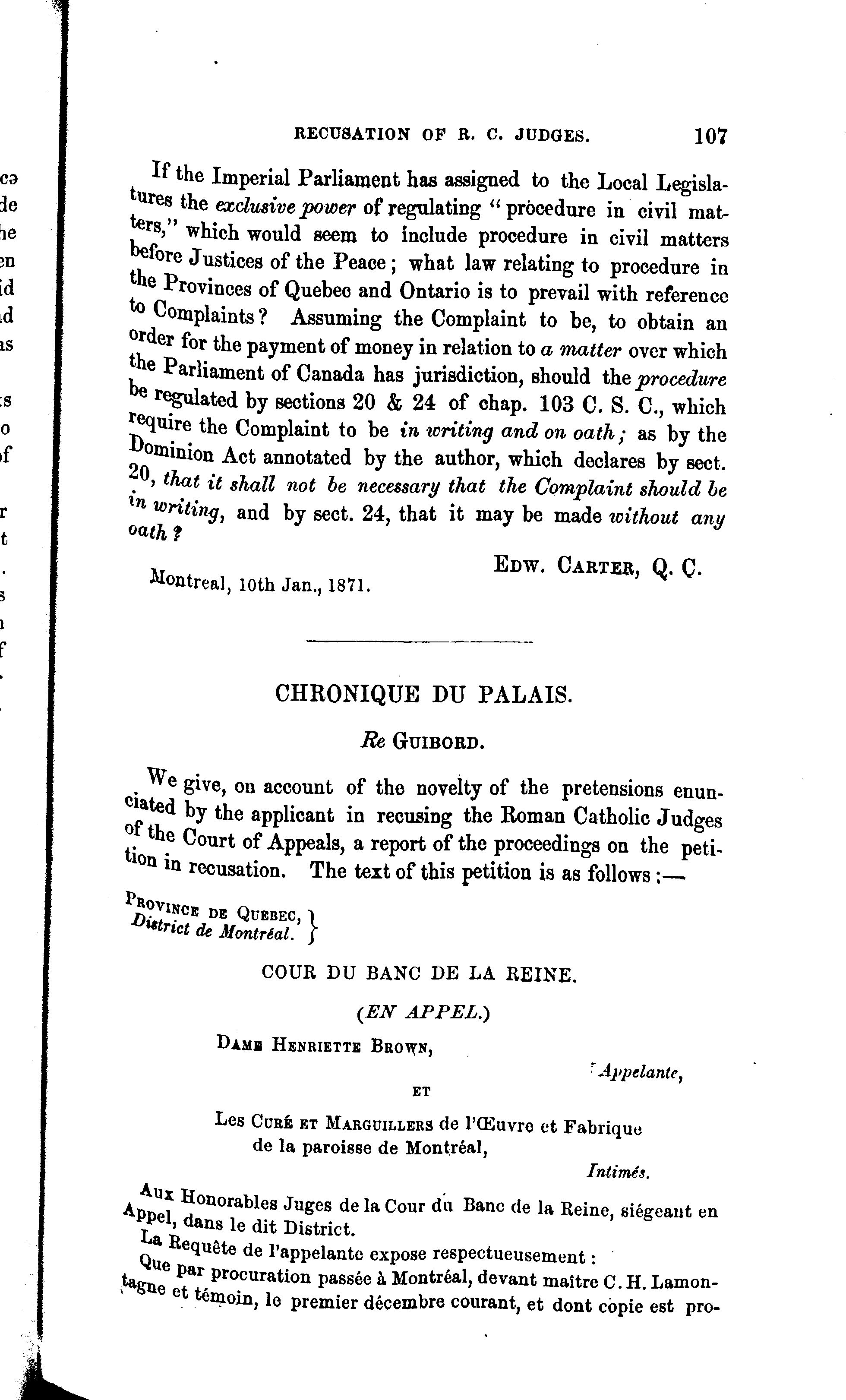 La Revue critique de législation et de jurisprudence du Canada : [Vol. 1, no 1 (1871)]