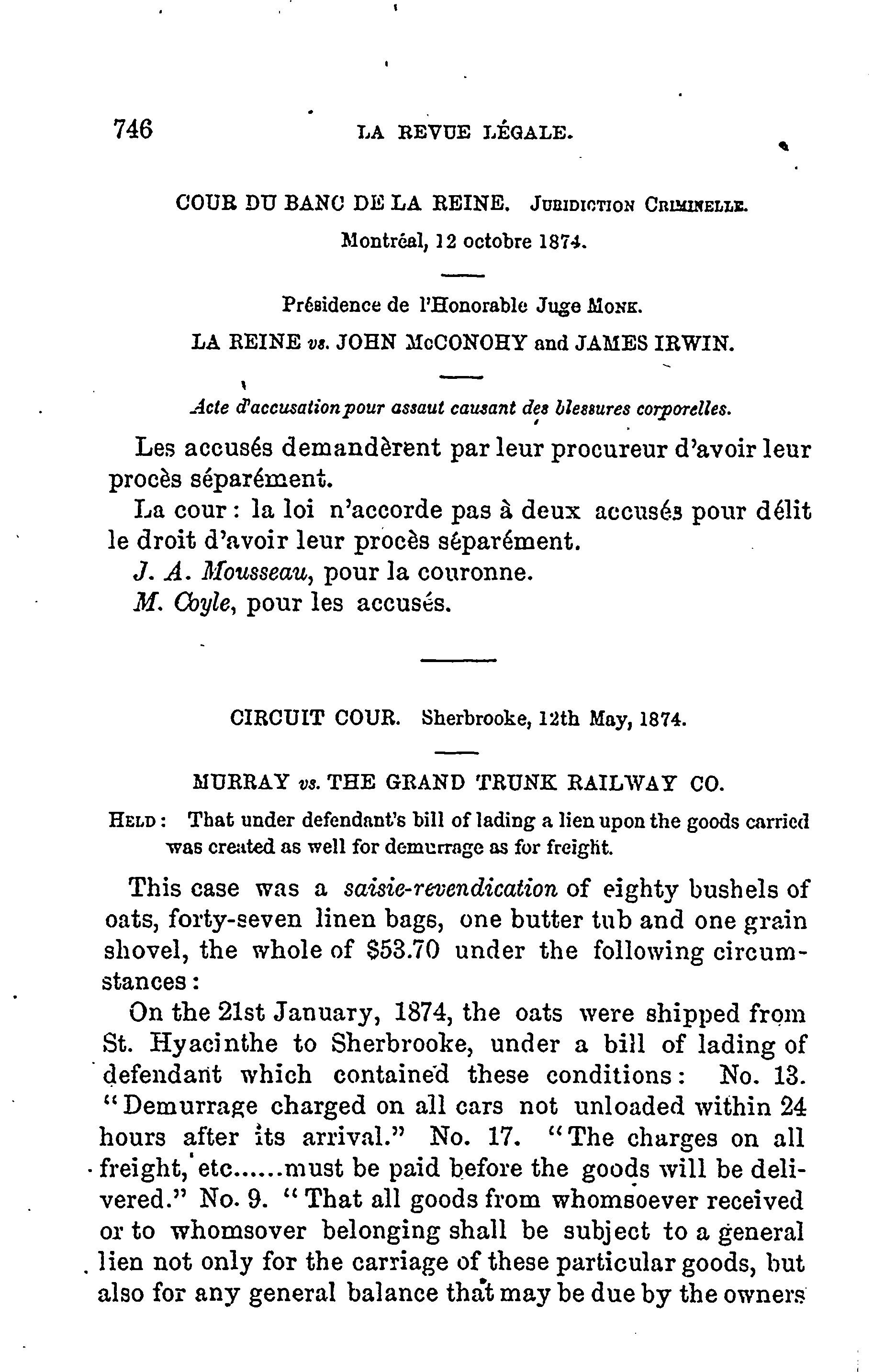 La revue légale : [Vol. 5, no 10/11/12 (1874)]