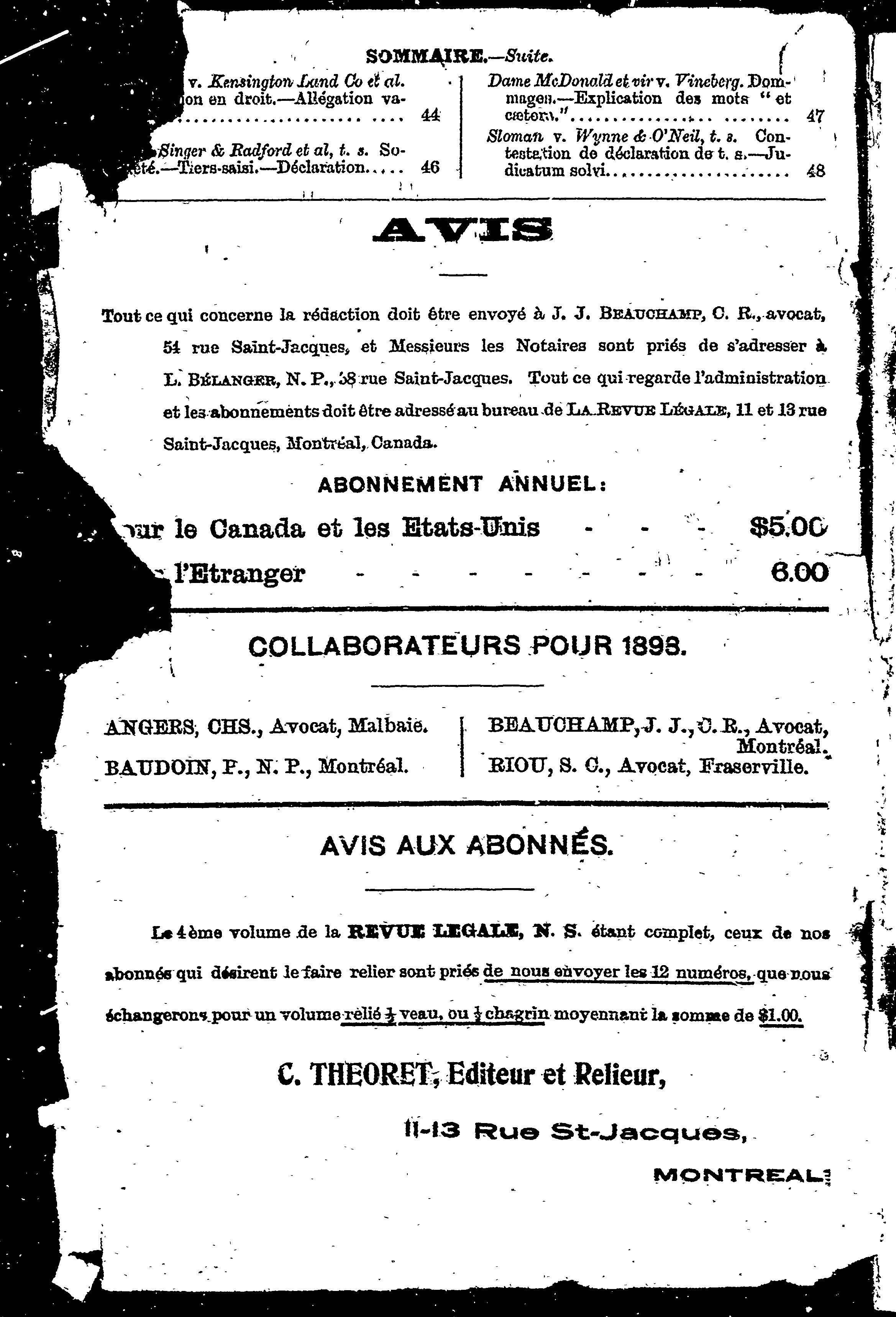 Montréal : C. Theoret, [1899]; 61 images avec recherche en texte intégral