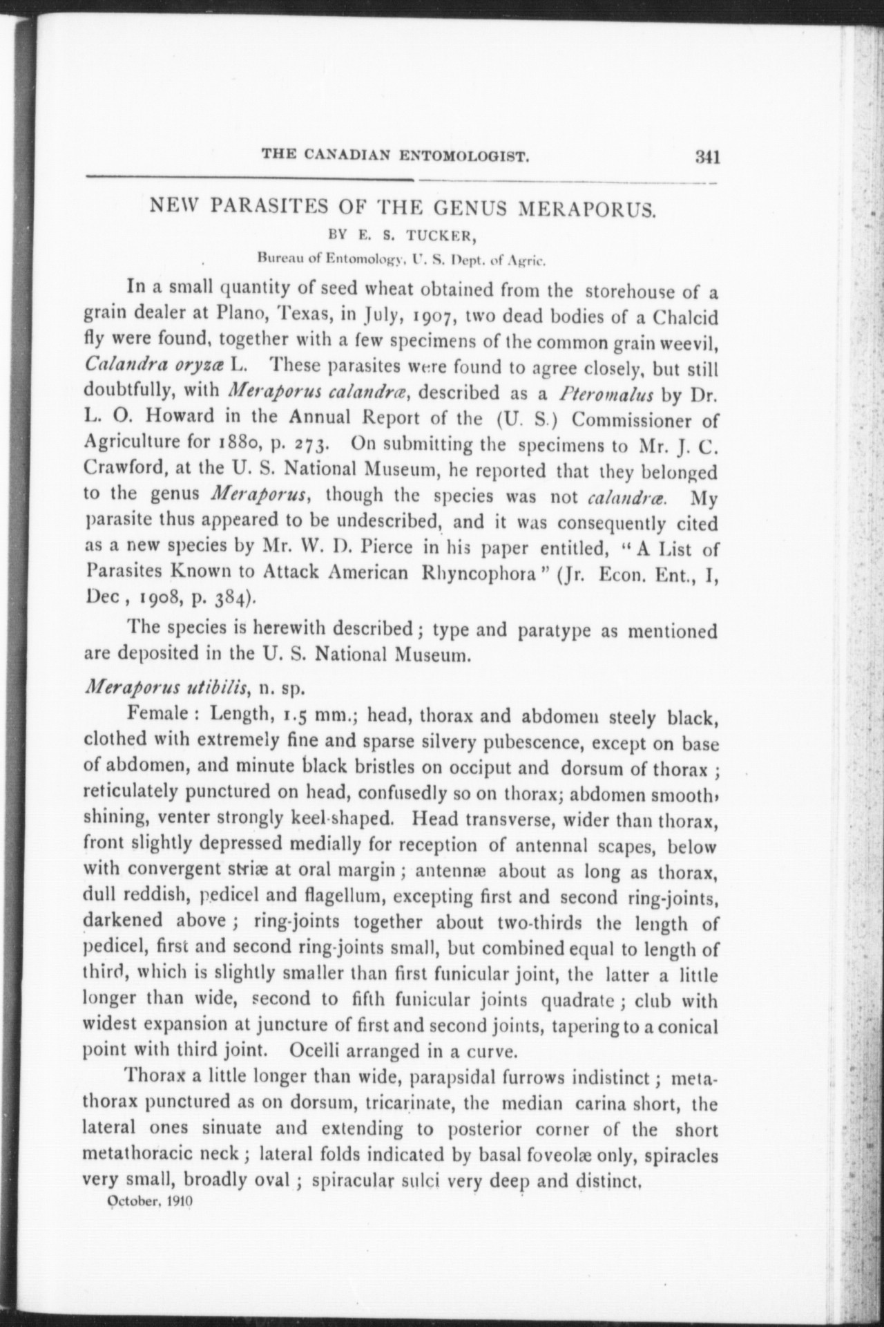 The Canadian entomologist : Vol. 42, no. 10 (Oct. 1910)