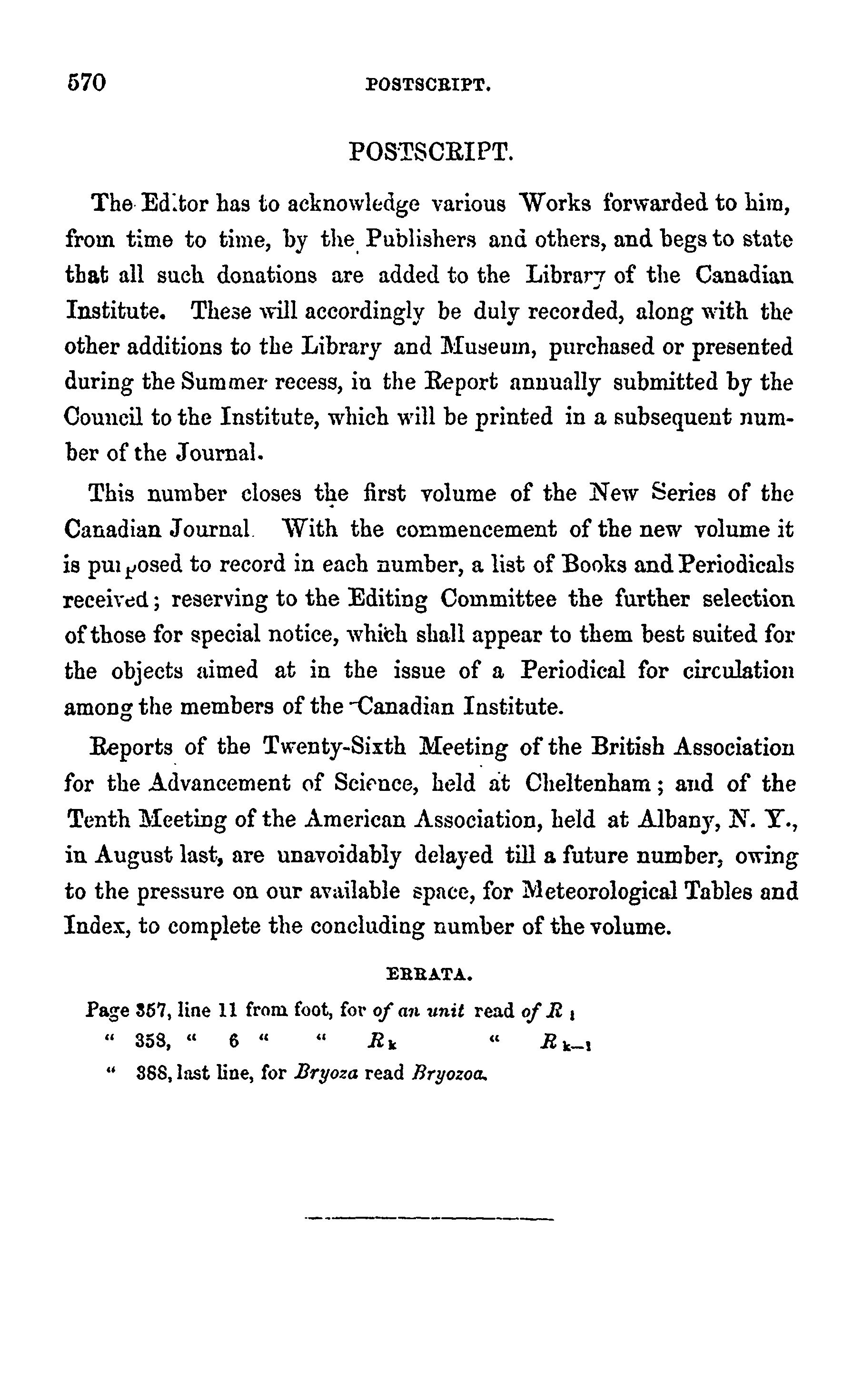 [Toronto : Printed for the Canadian Institute by Lovell and Gibson, 1856]