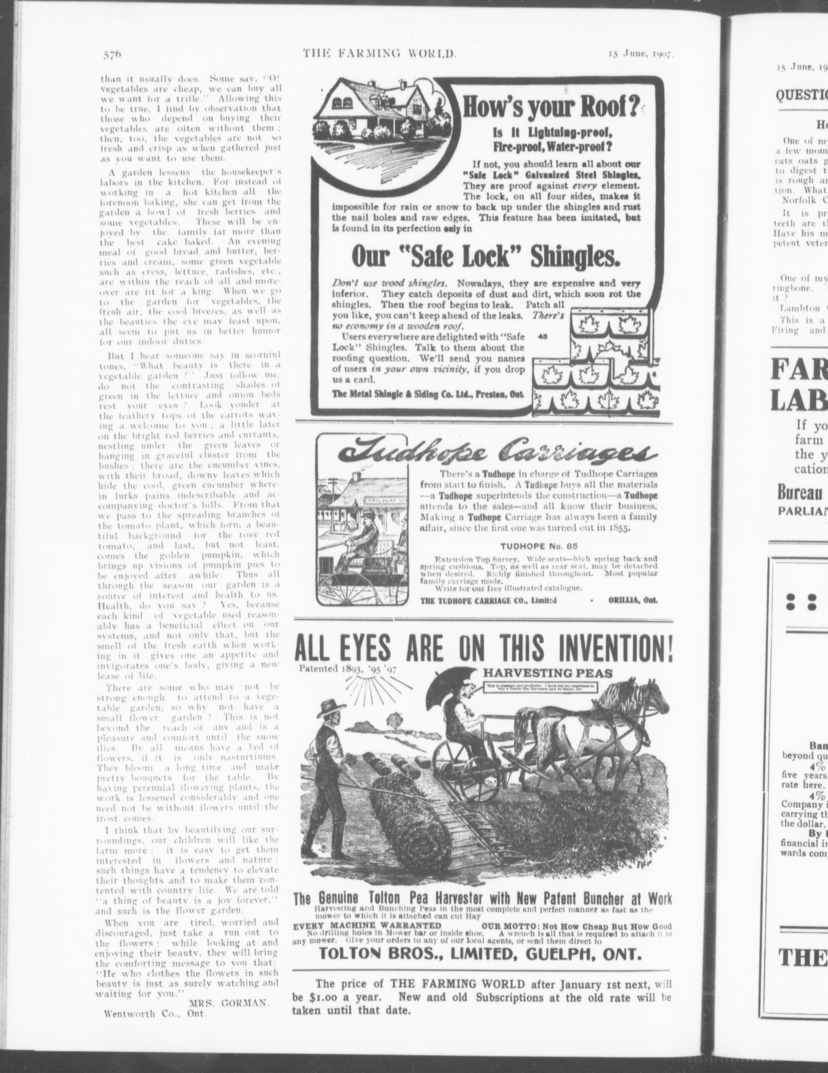 The farming world : Vol. XXVI, No. 12 (June 15, 1907)