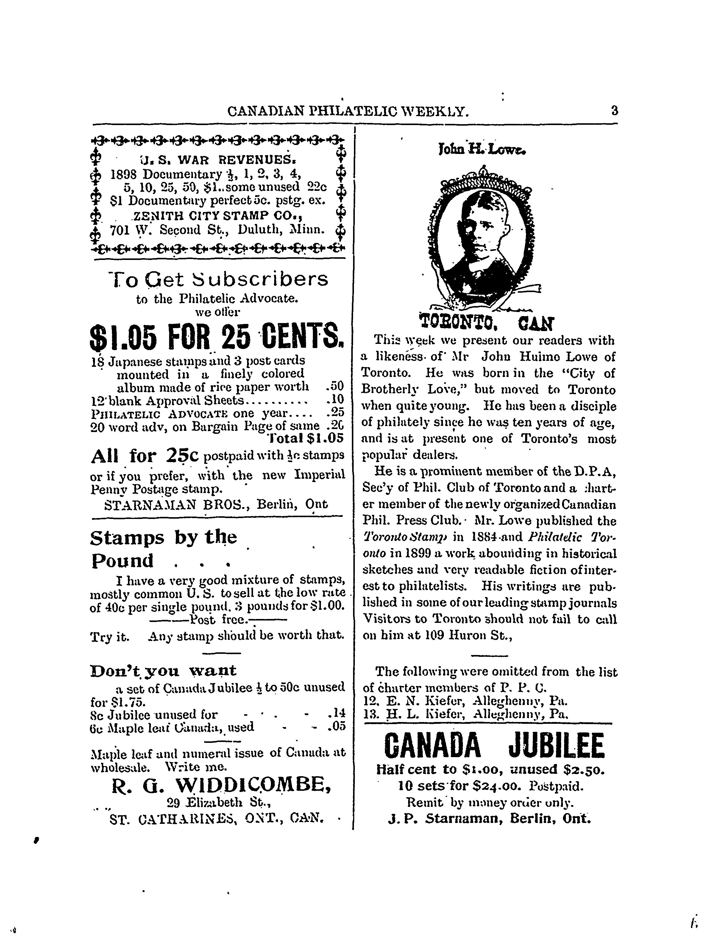 The Canadian philatelic weekly : Vol. 4, no. 1 (Jan. 12, 1899)
