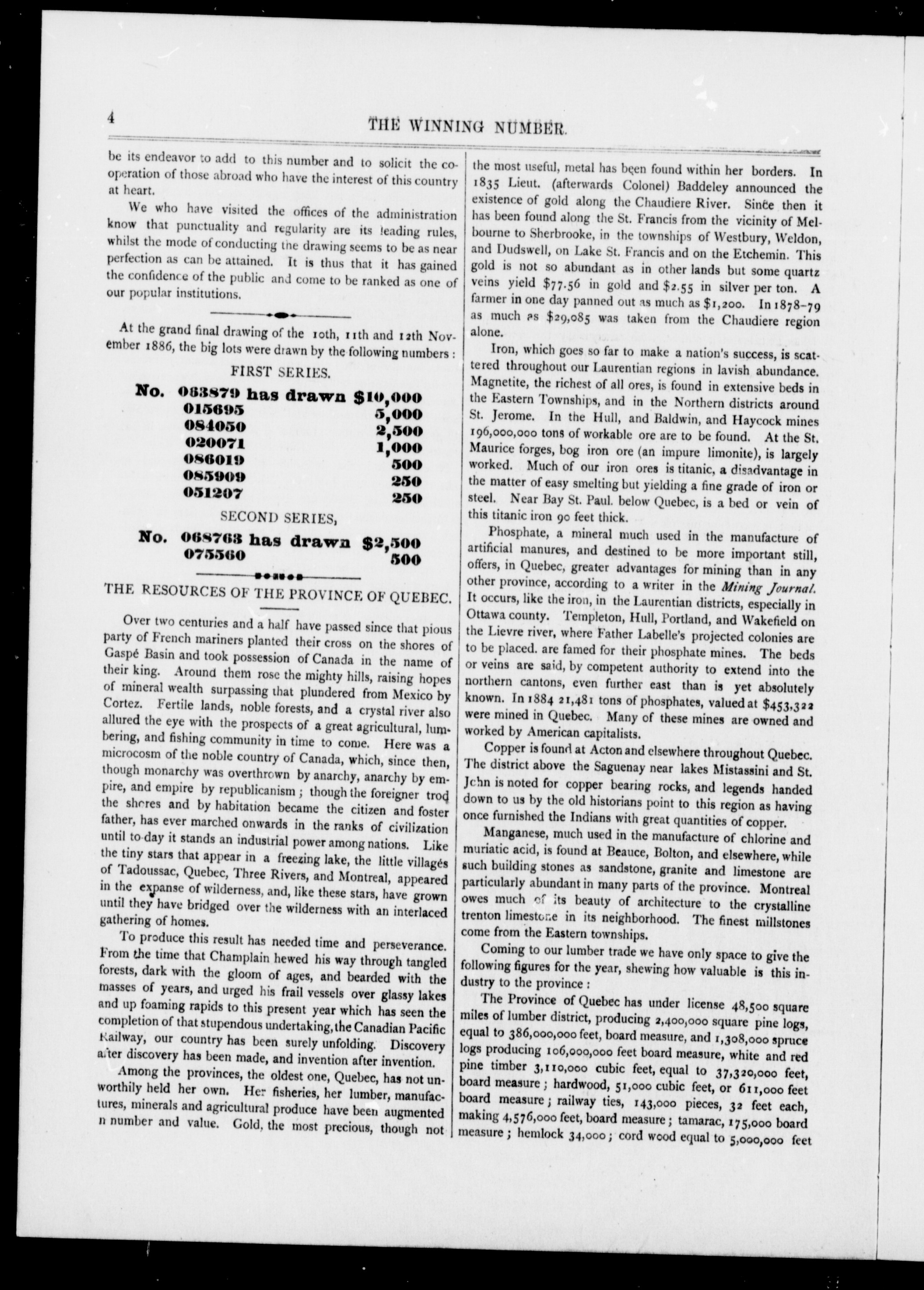 The Winning number : Vol. 1, No. 1 (November 15, 1886)