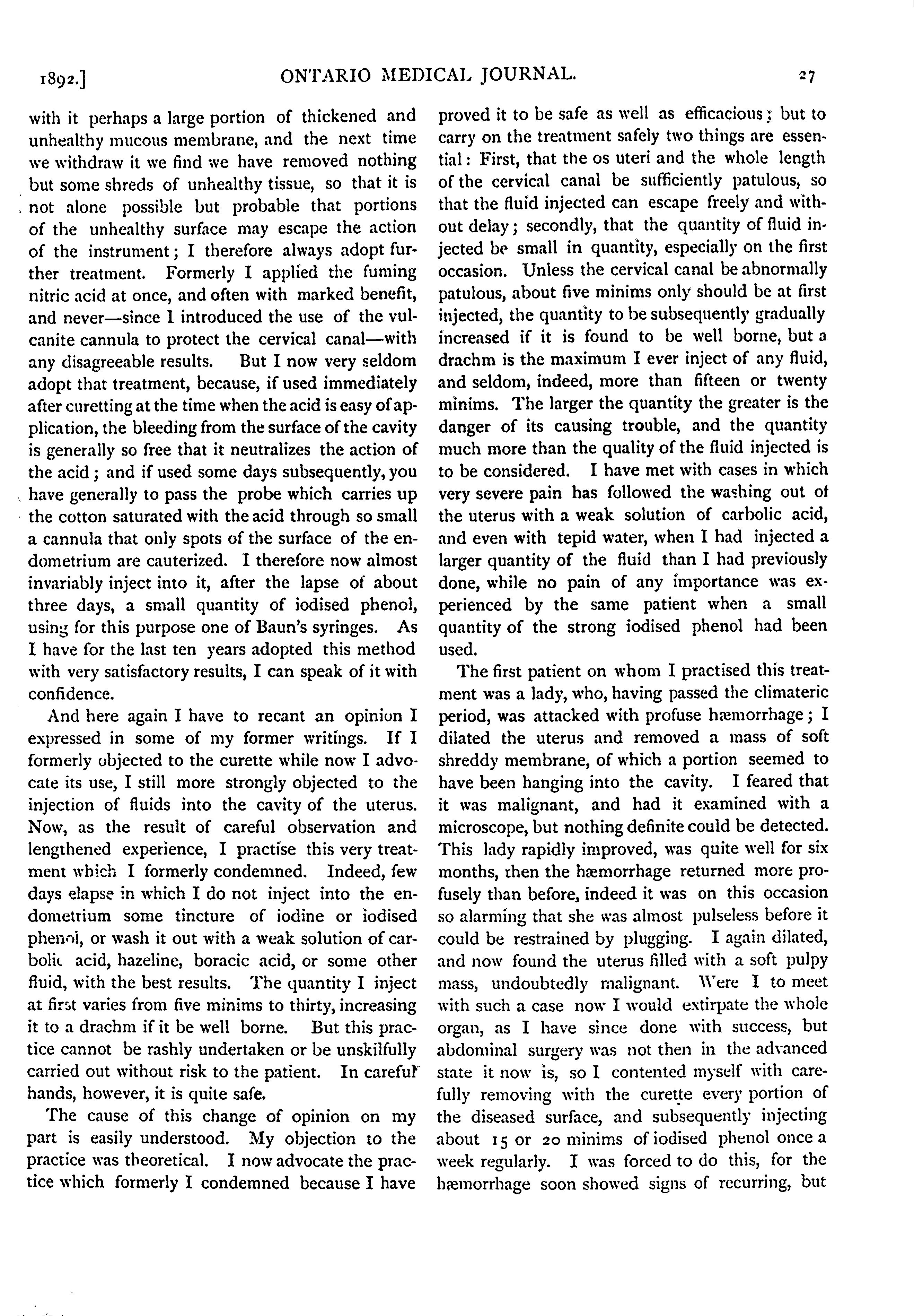 Ontario medical journal [Vol. 1, no. 1 (Aug. 1892)]