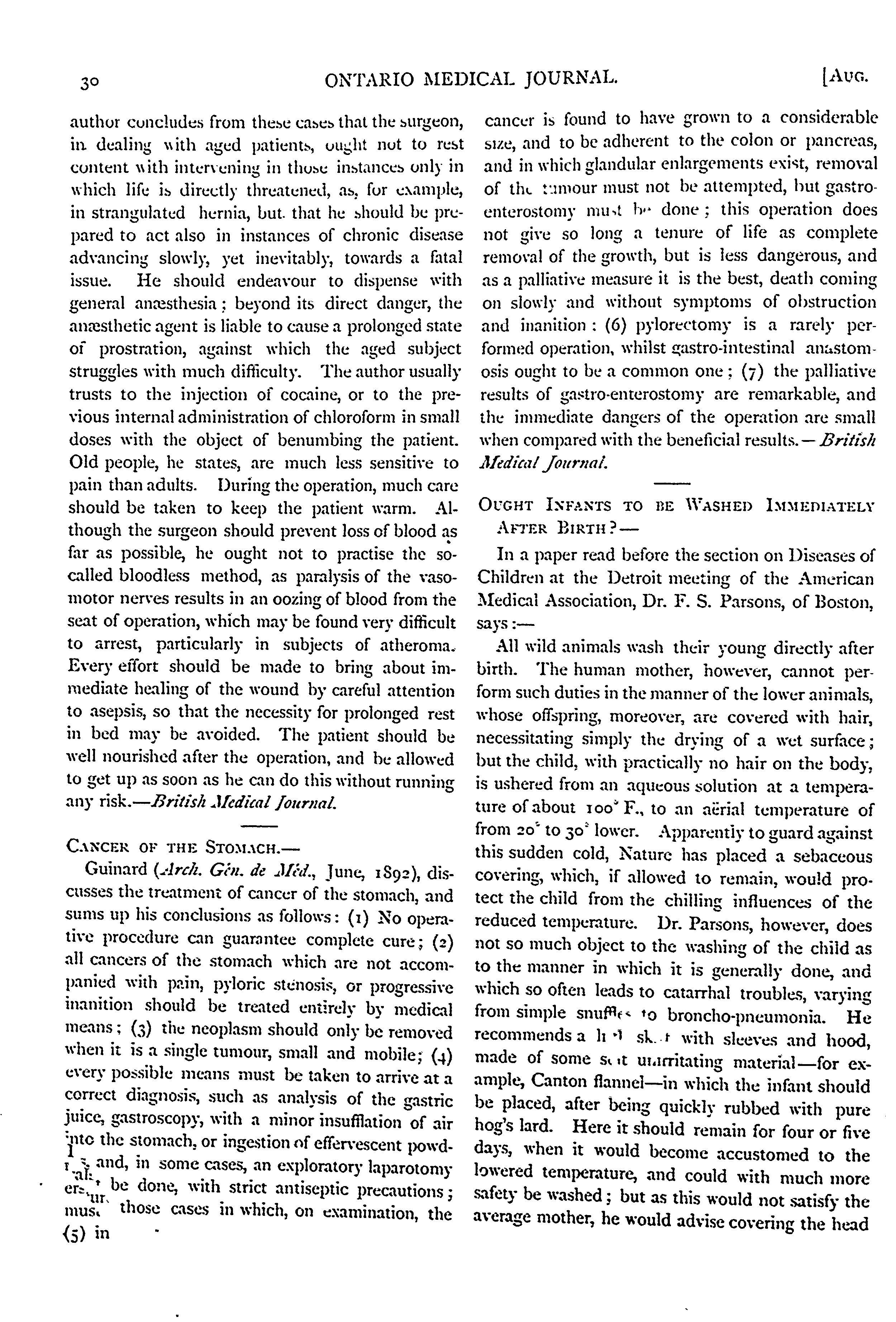 Ontario medical journal [Vol. 1, no. 1 (Aug. 1892)]