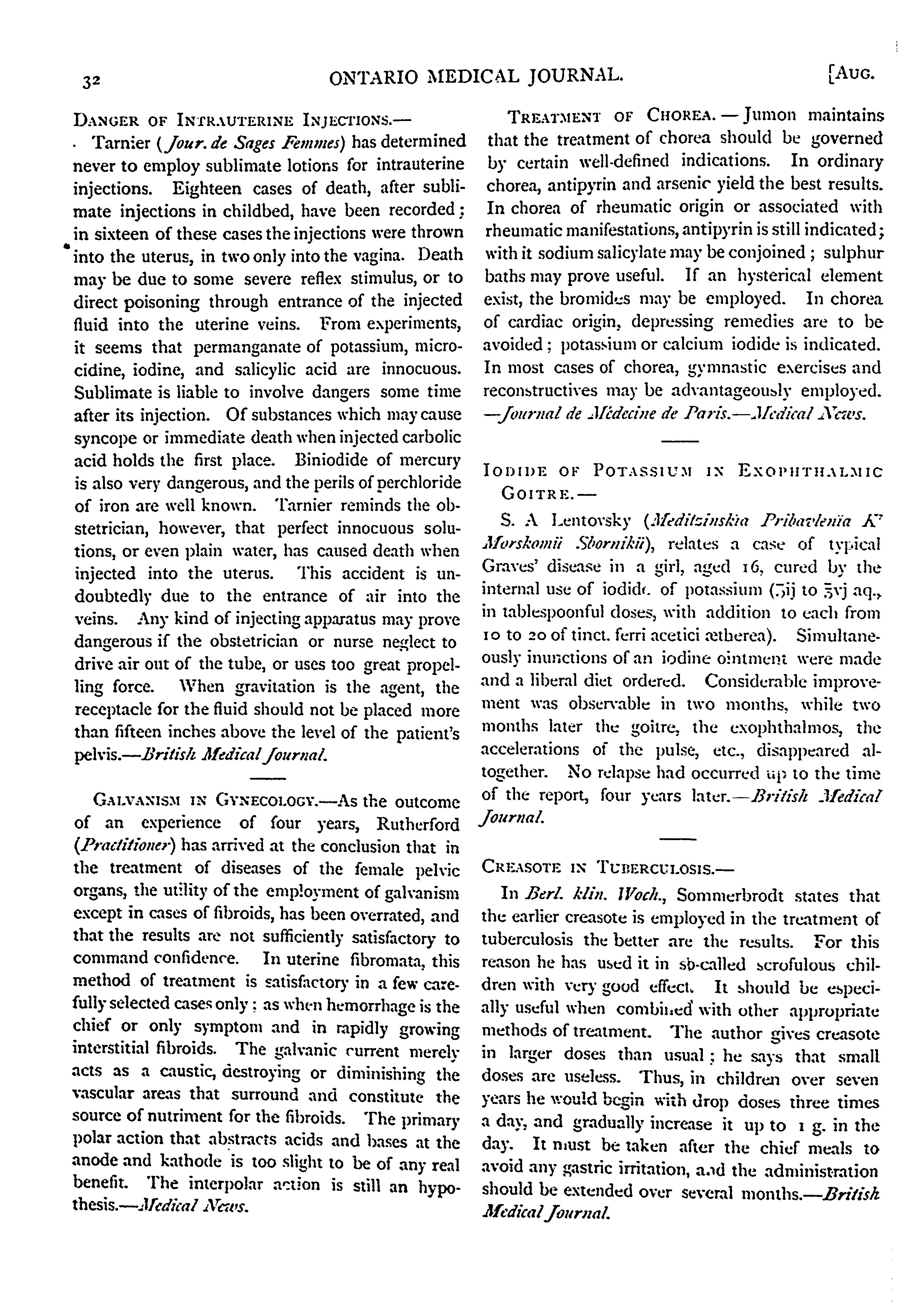 Ontario medical journal [Vol. 1, no. 1 (Aug. 1892)]