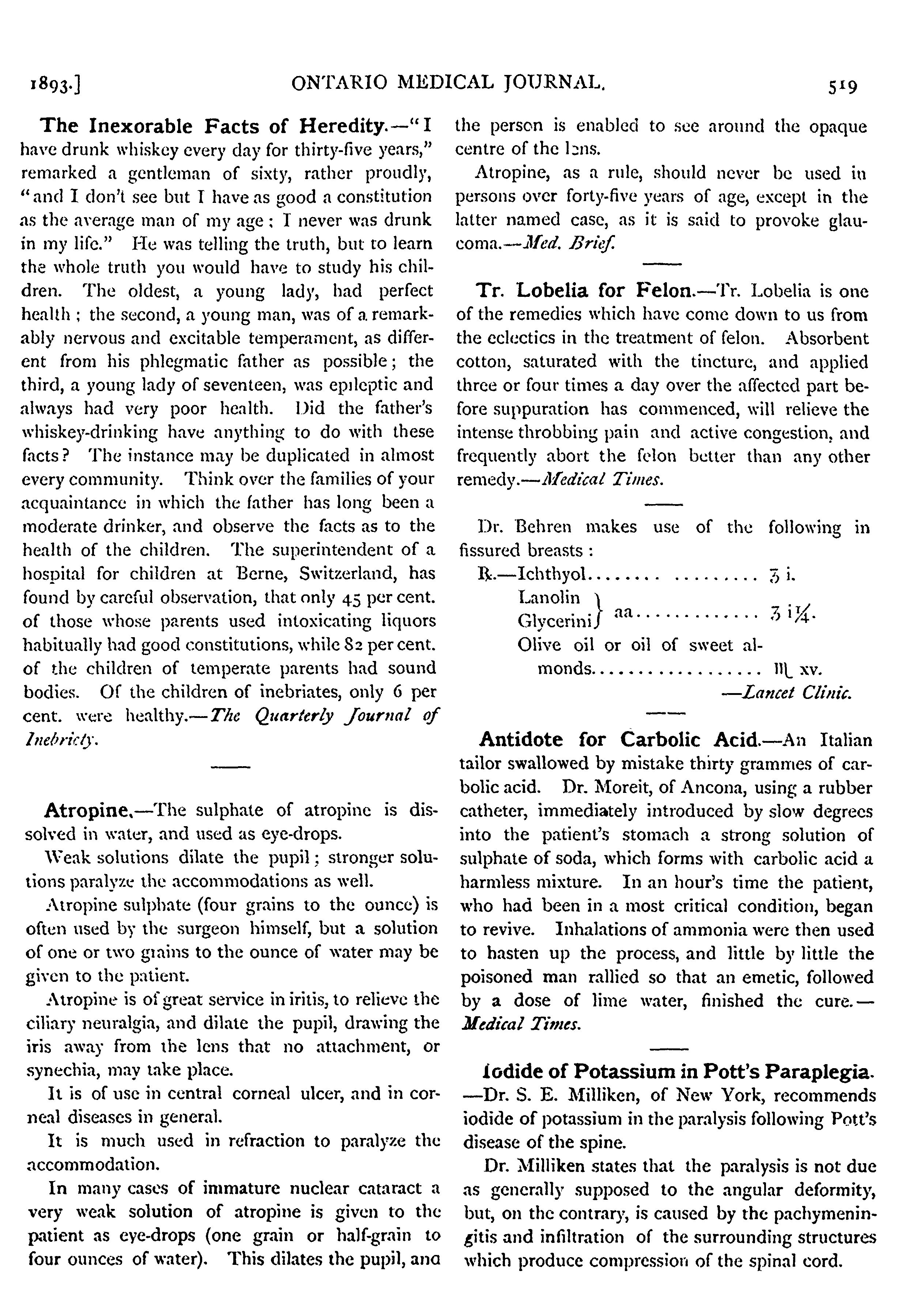 Toronto : [Ontario Medical Journal Pub. Co., 1893]; 40 images avec recherche en texte intégral