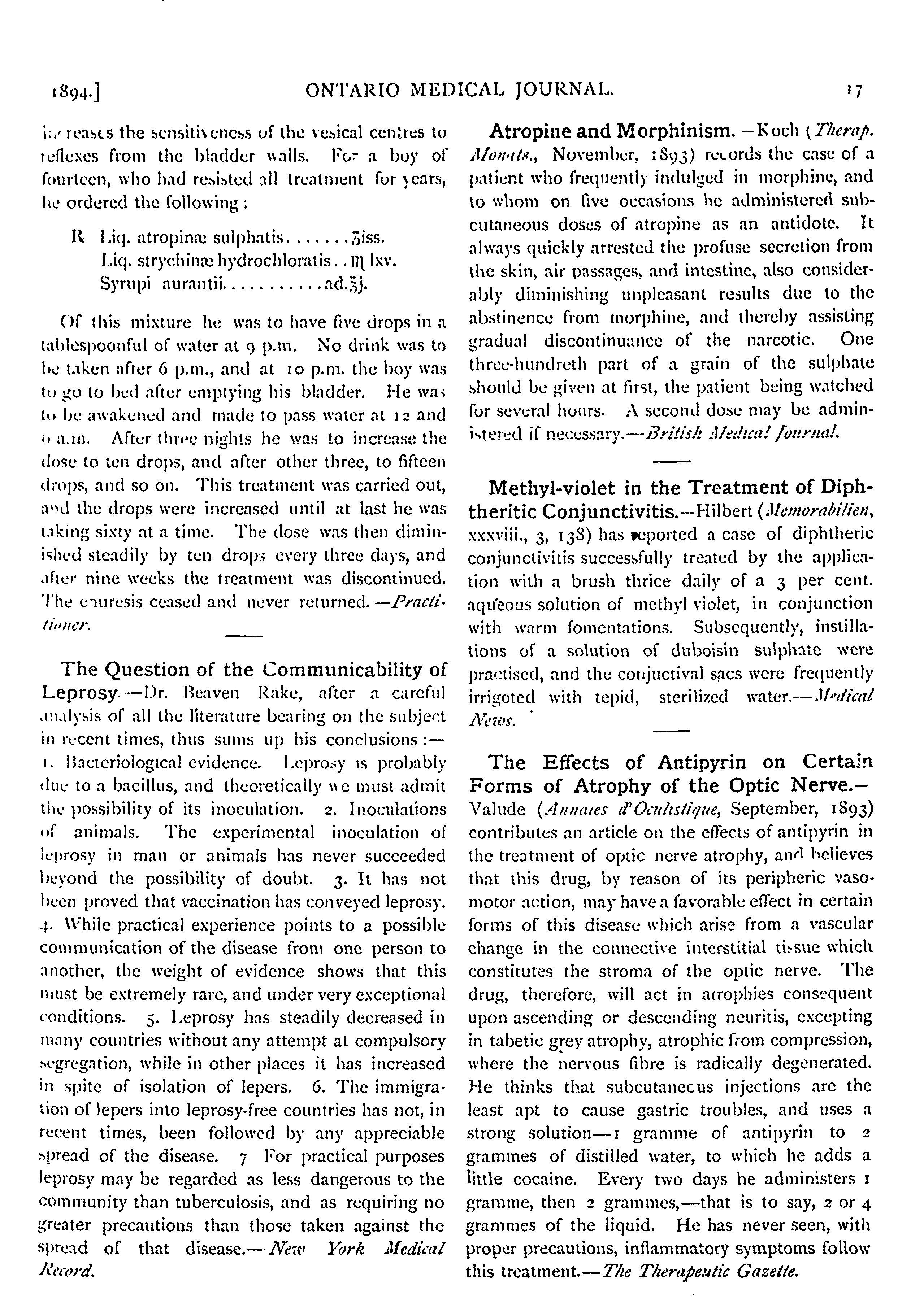 Toronto : [Ontario Medical Journal Pub. Co., 1894]; 36 images avec recherche en texte intégral