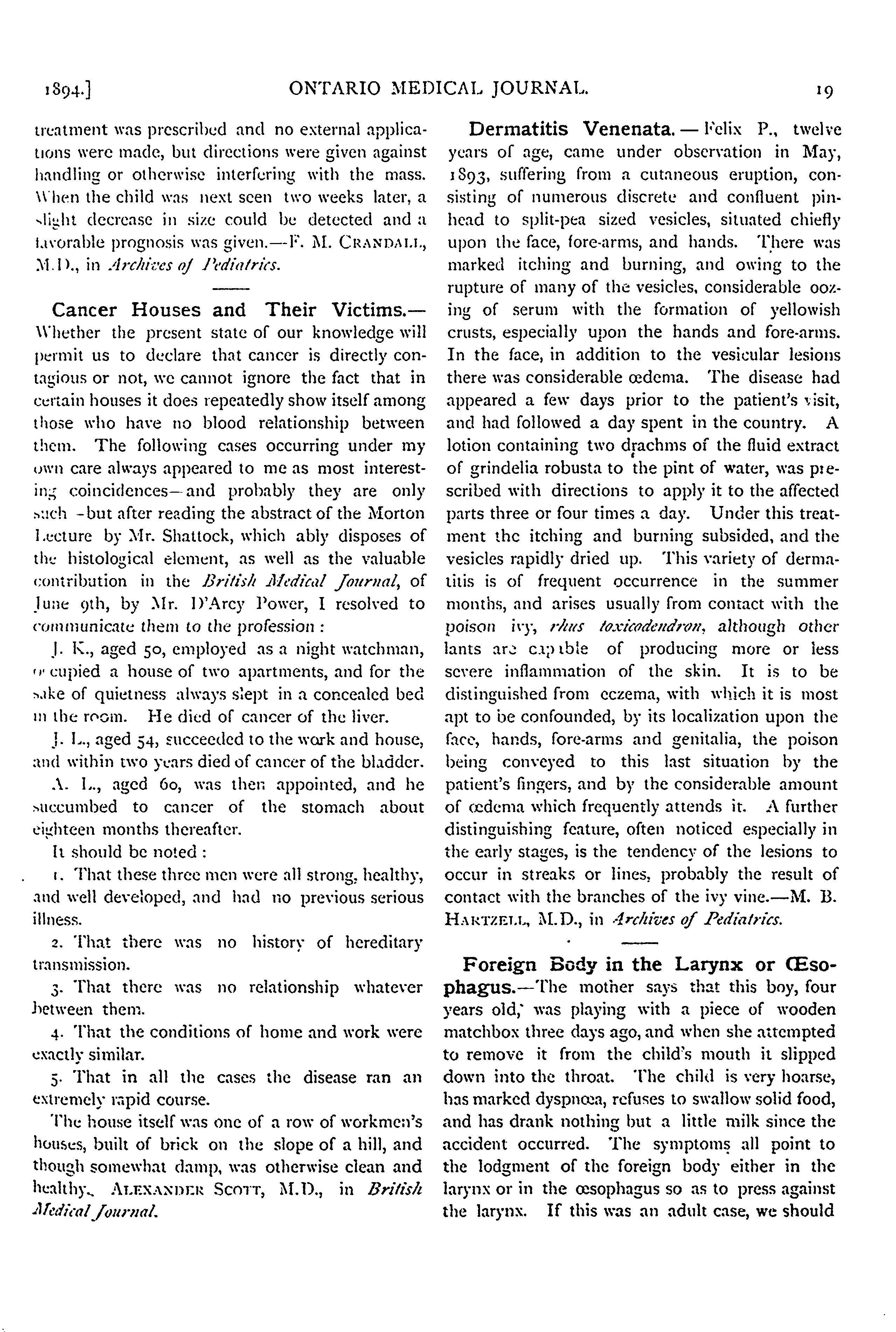 Toronto : [Ontario Medical Journal Pub. Co., 1894]; 36 images avec recherche en texte intégral