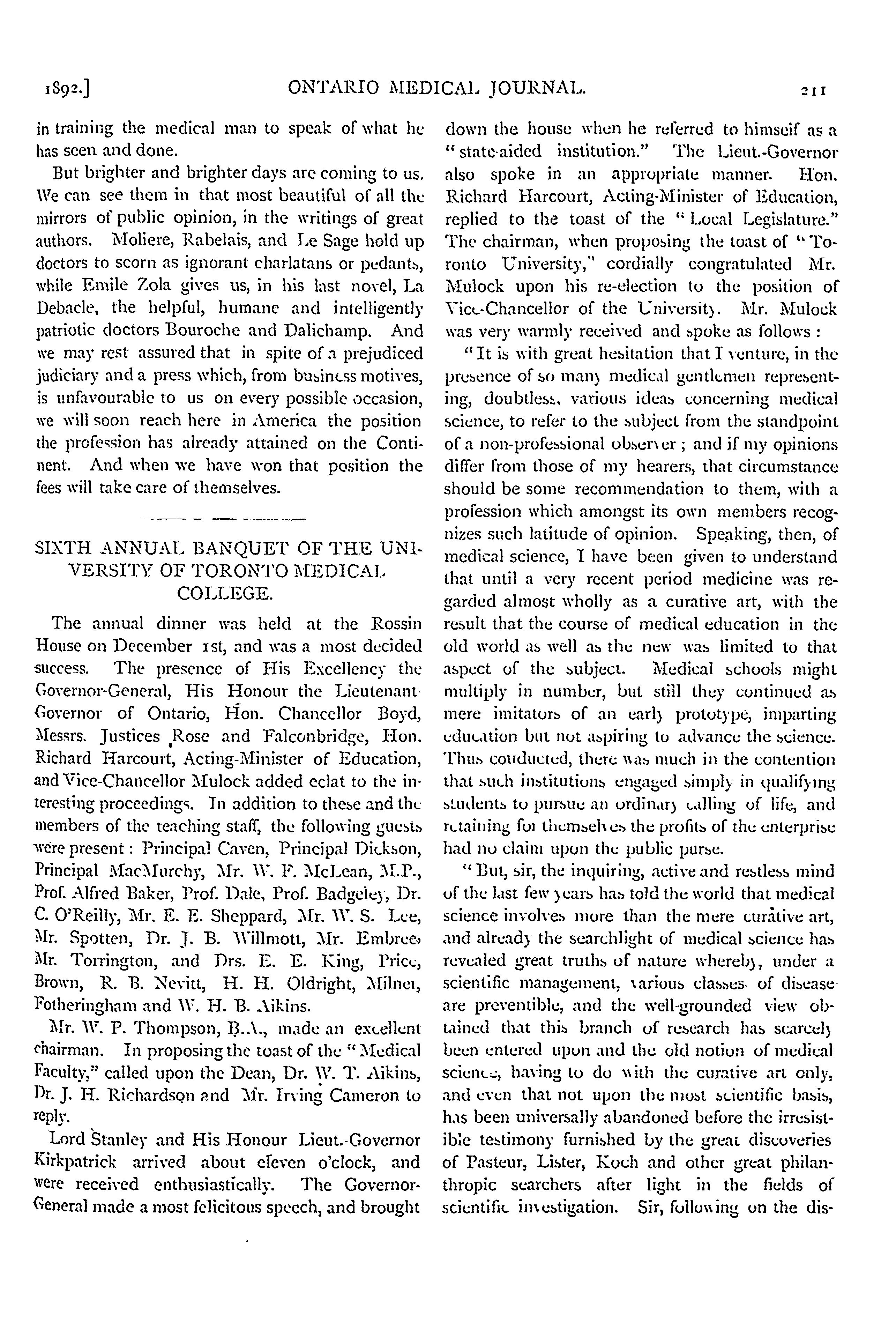 Toronto : [Ontario Medical Journal Pub. Co., 1892]