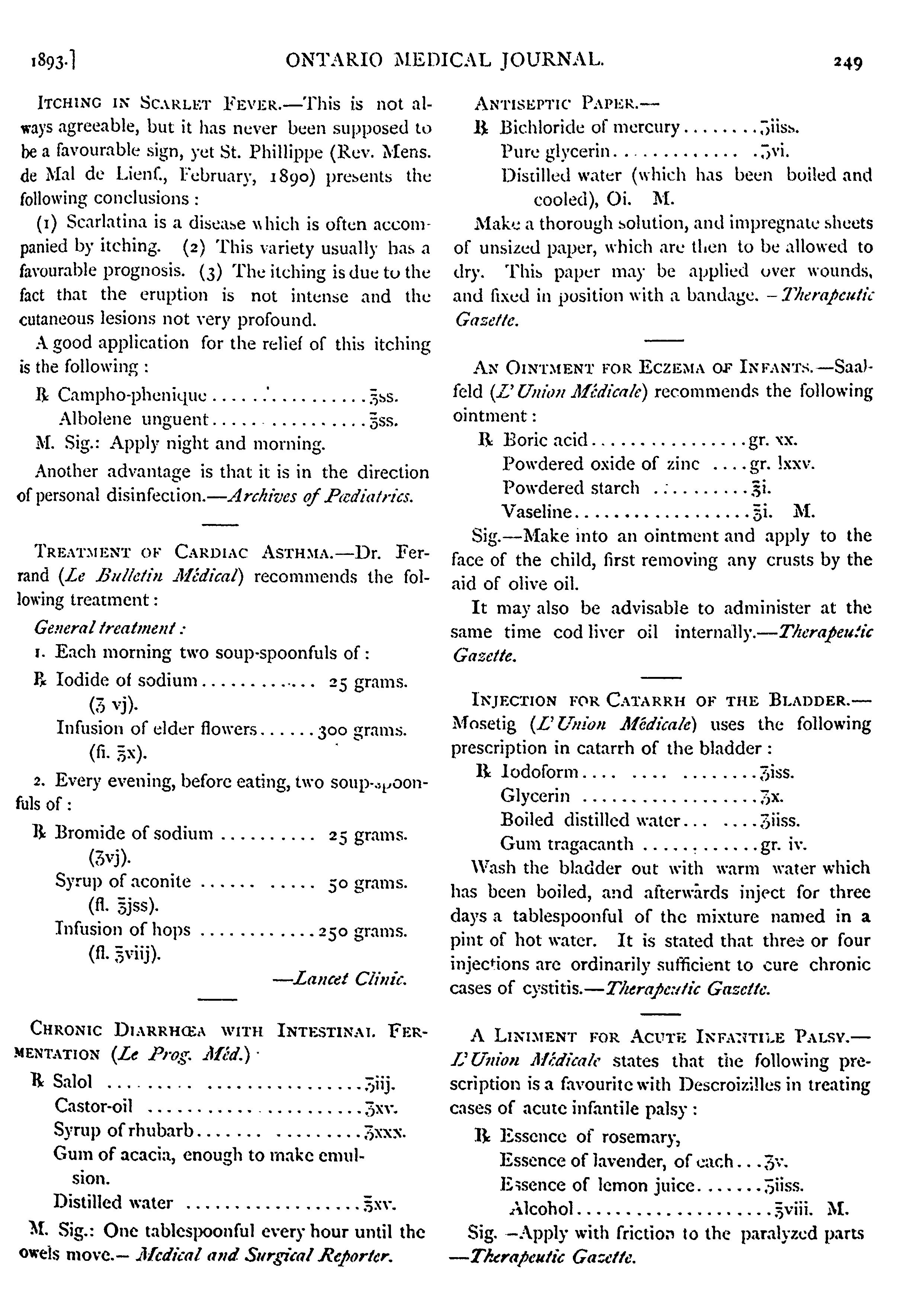 Toronto : [Ontario Medical Journal Pub. Co., 1893?]; 43 images avec recherche en texte intégral