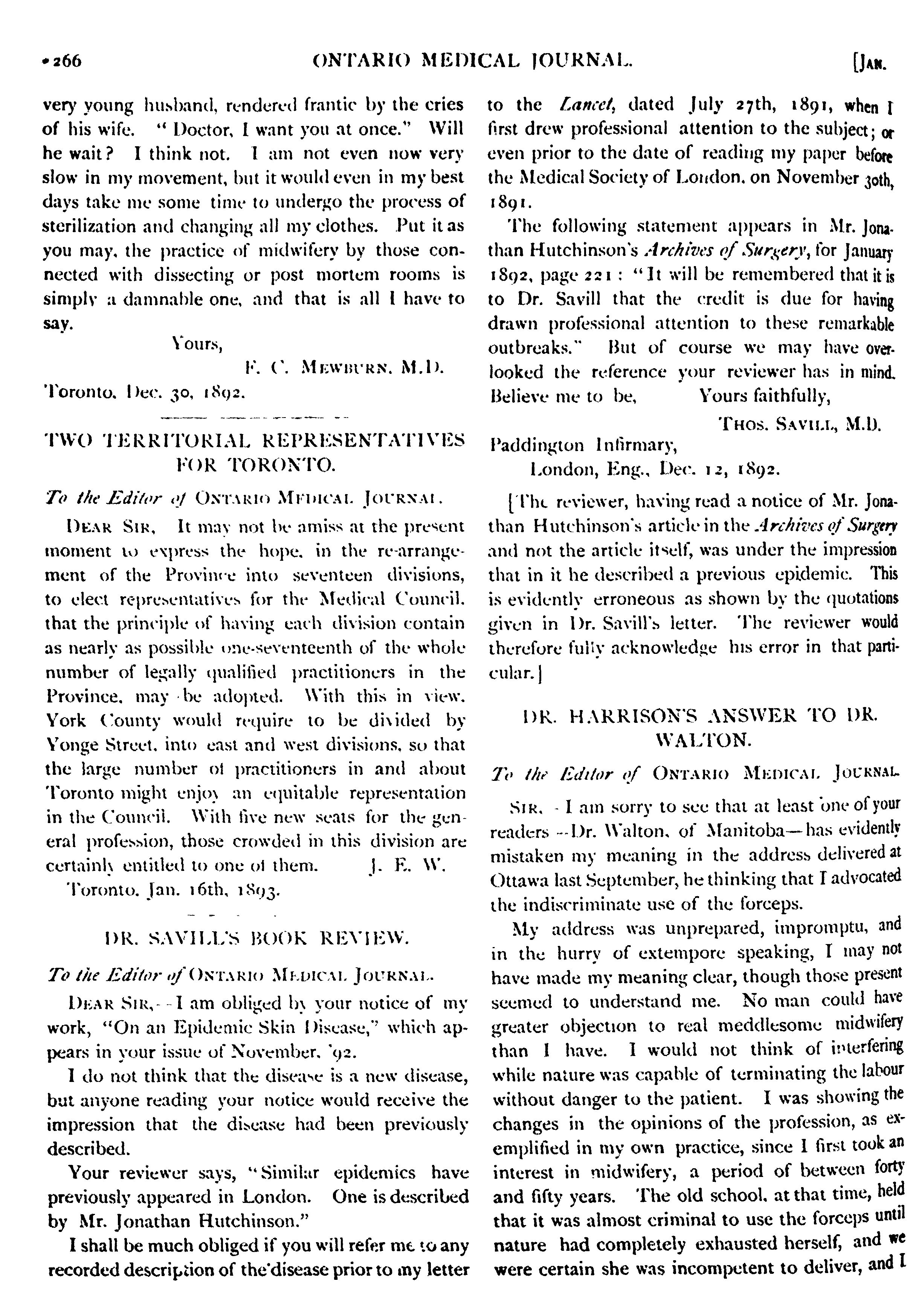 Toronto : [Ontario Medical Journal Pub. Co., 1893?]; 43 images avec recherche en texte intégral