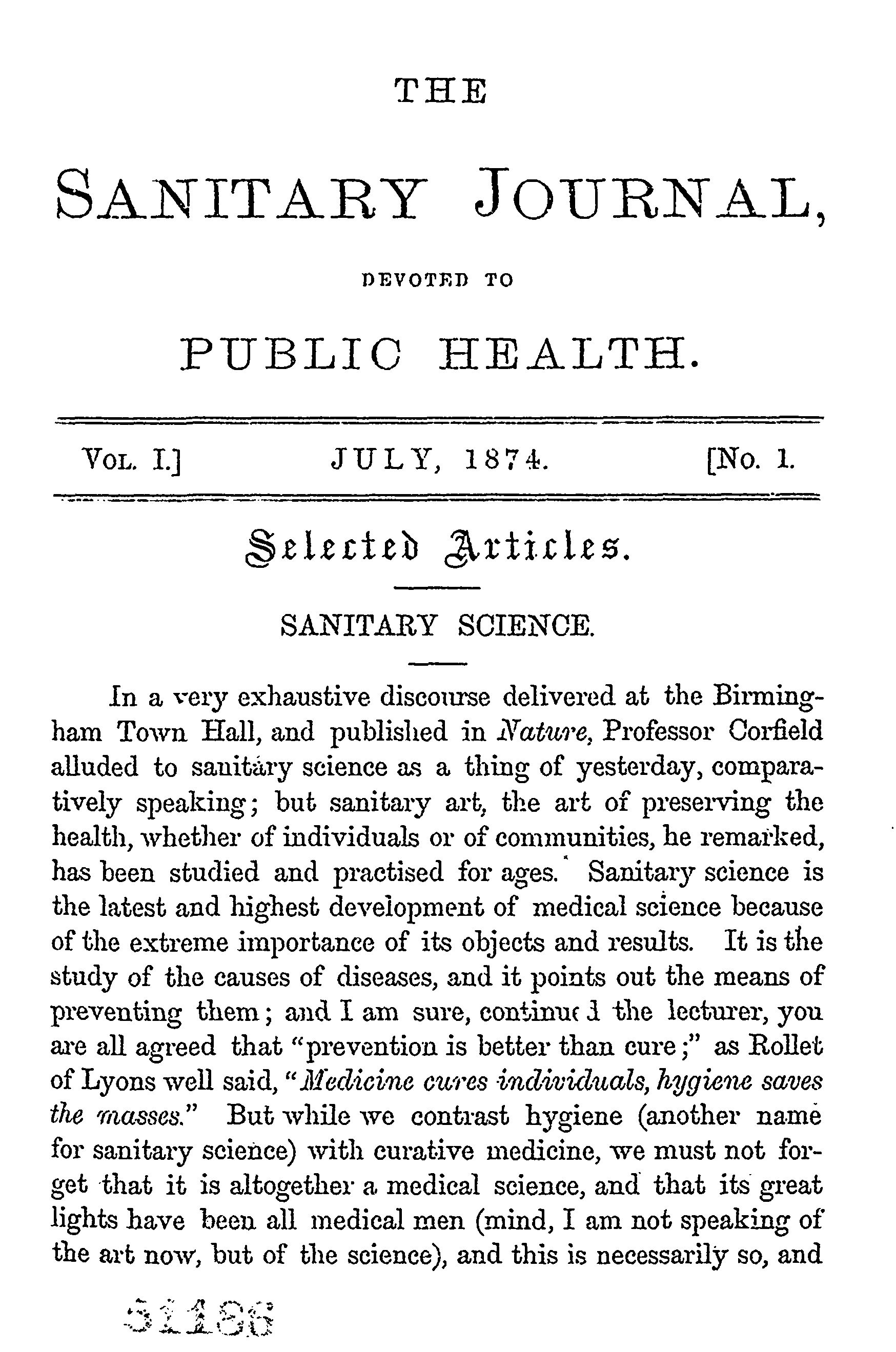 - The sanitary journal [Vol. 1, no. 1 (July 1874)]