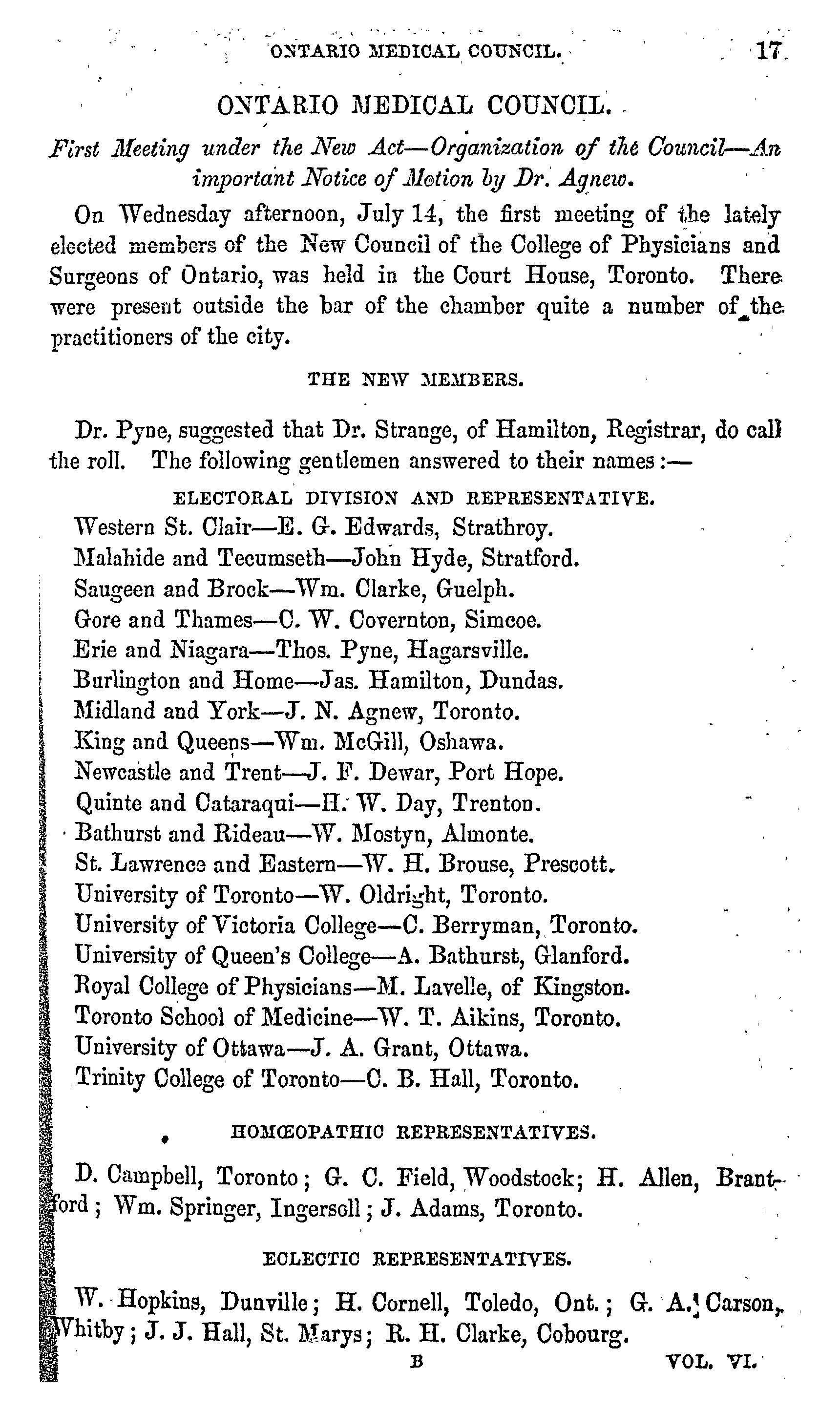Canada medical journal and monthly record of medical and surgical science. : Canada medical journal and monthly record of medical and surgical science : Vol. 6, [no. 1 (July 1869)]
