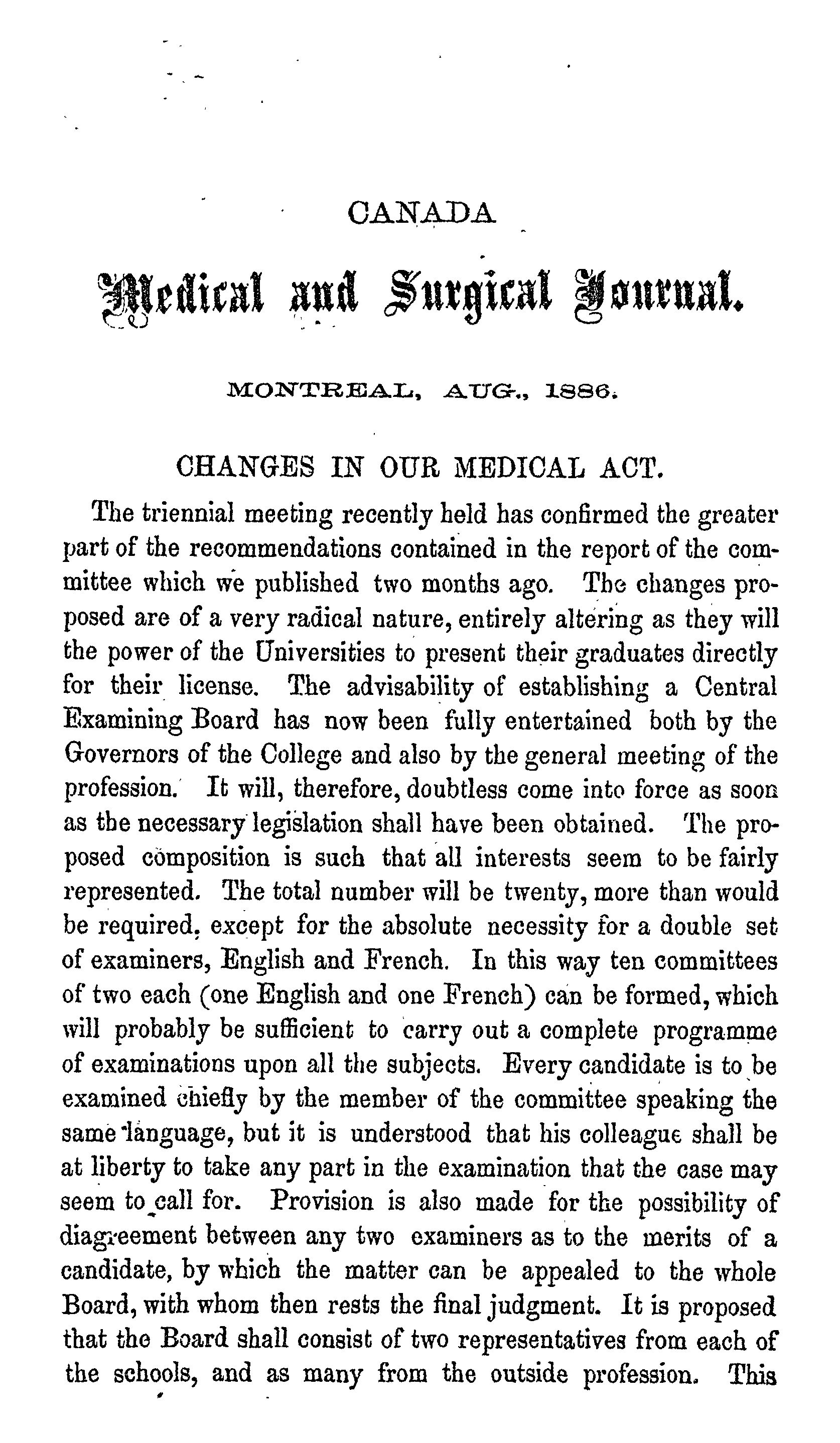 - Canada medical & surgical journal : Vol. 15, [no. 1] (Aug. 1886)