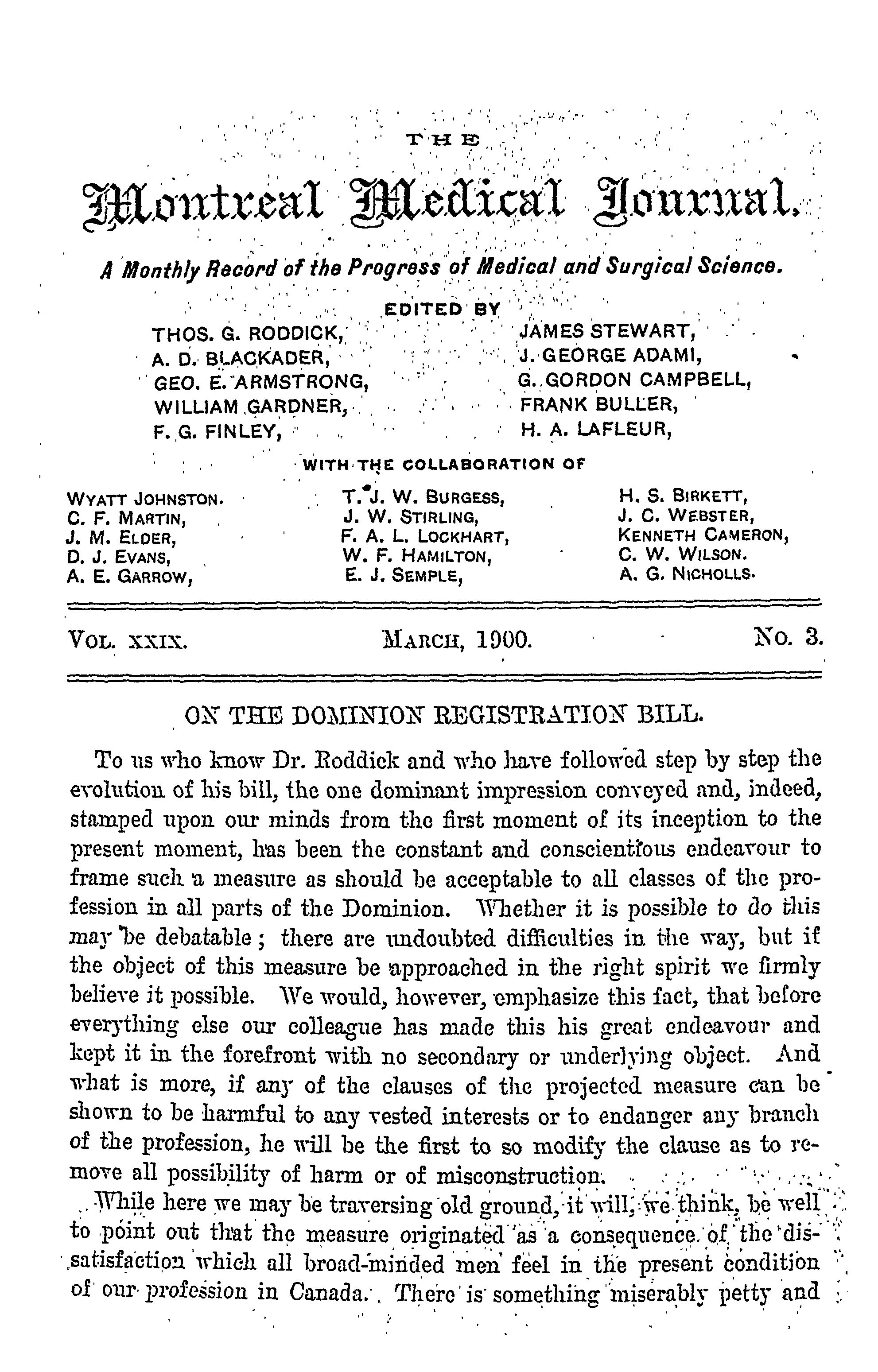 The Montreal medical journal : [Vol. 29, no. 3 (Mar. 1900)]