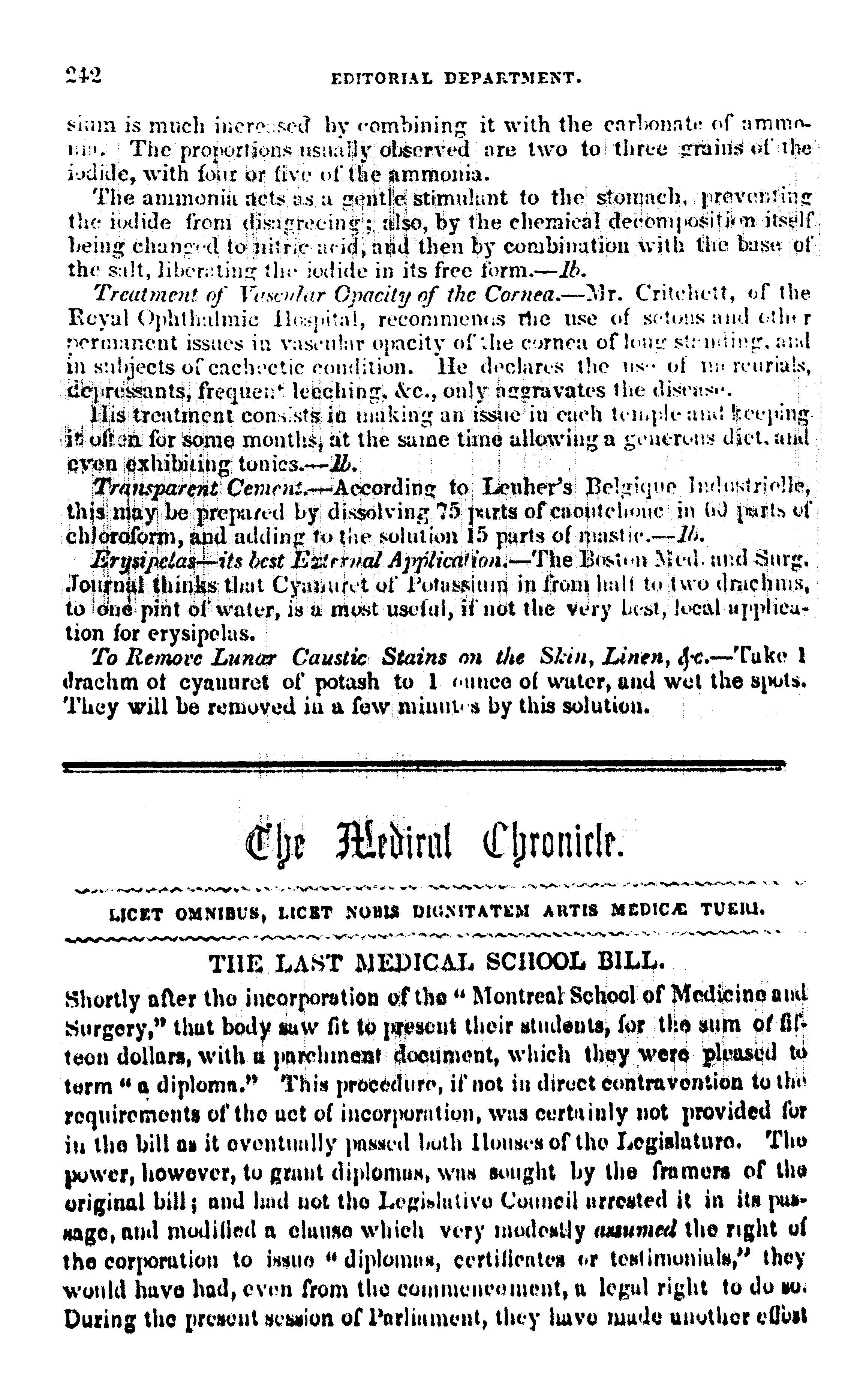The medical chronicle, or, Montreal monthly journal of medicine & surgery : [Vol. 2, no. 6 (Nov. 1854)]