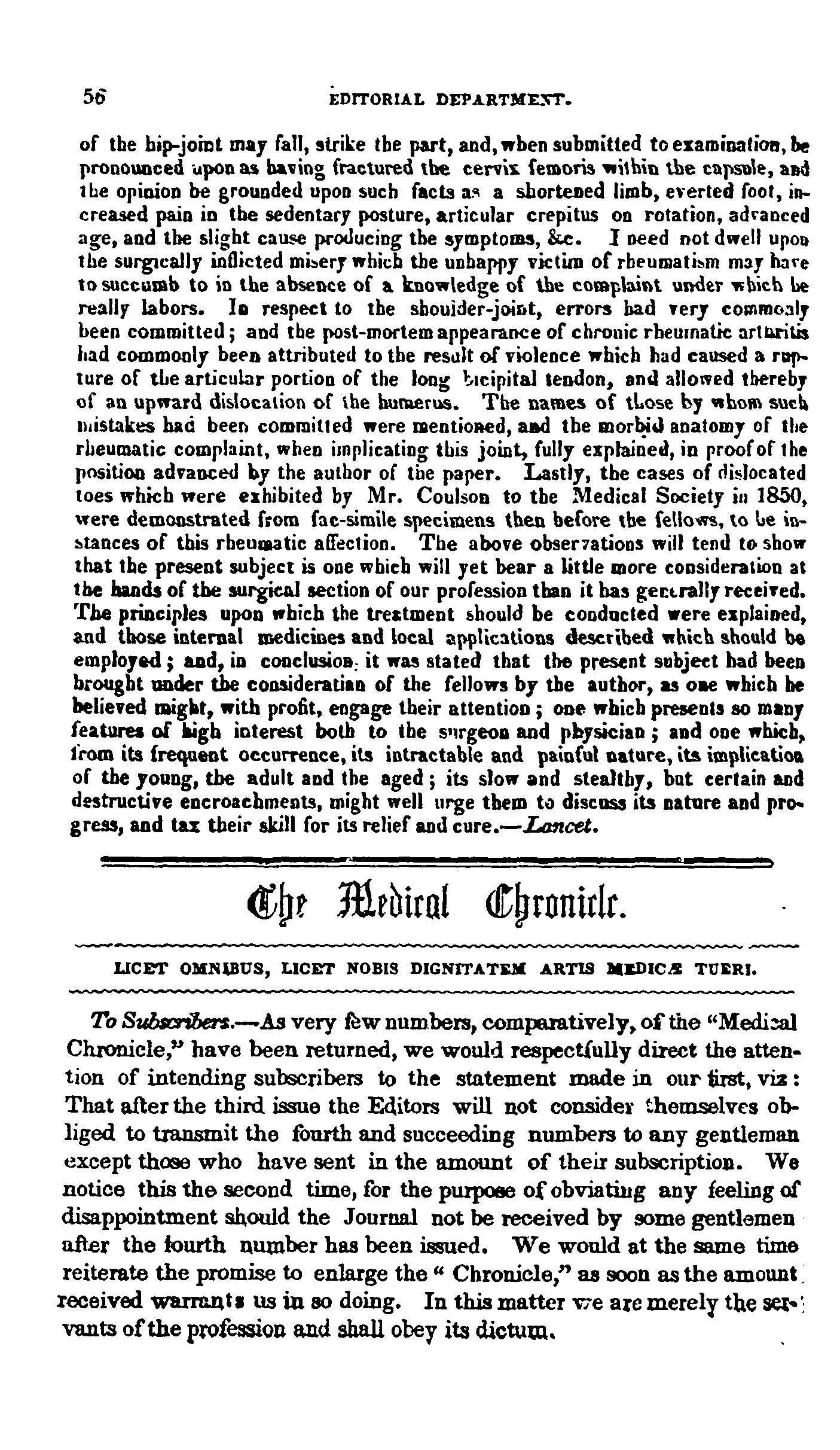 The medical chronicle [Vol. 1, no. 2 (July 1853)]