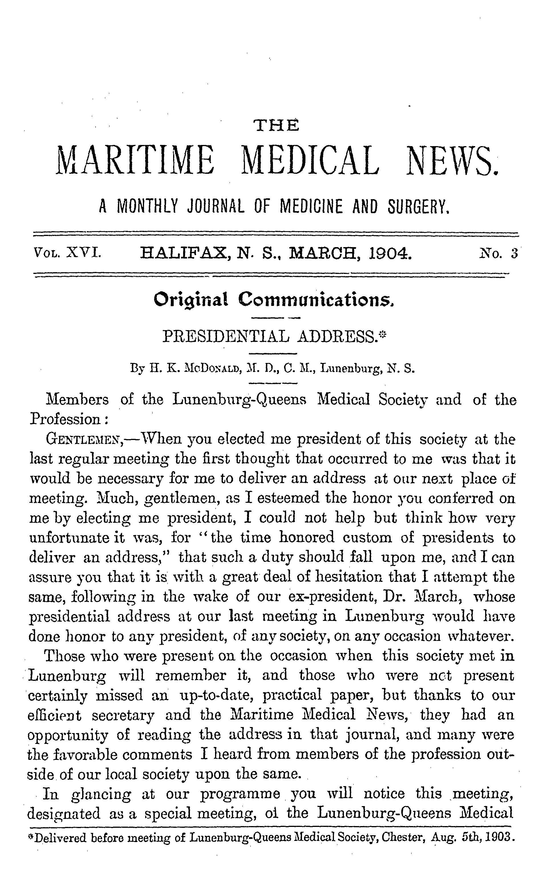 The Maritime medical news : [Vol. 16, no. 3 (Mar. 1904)]